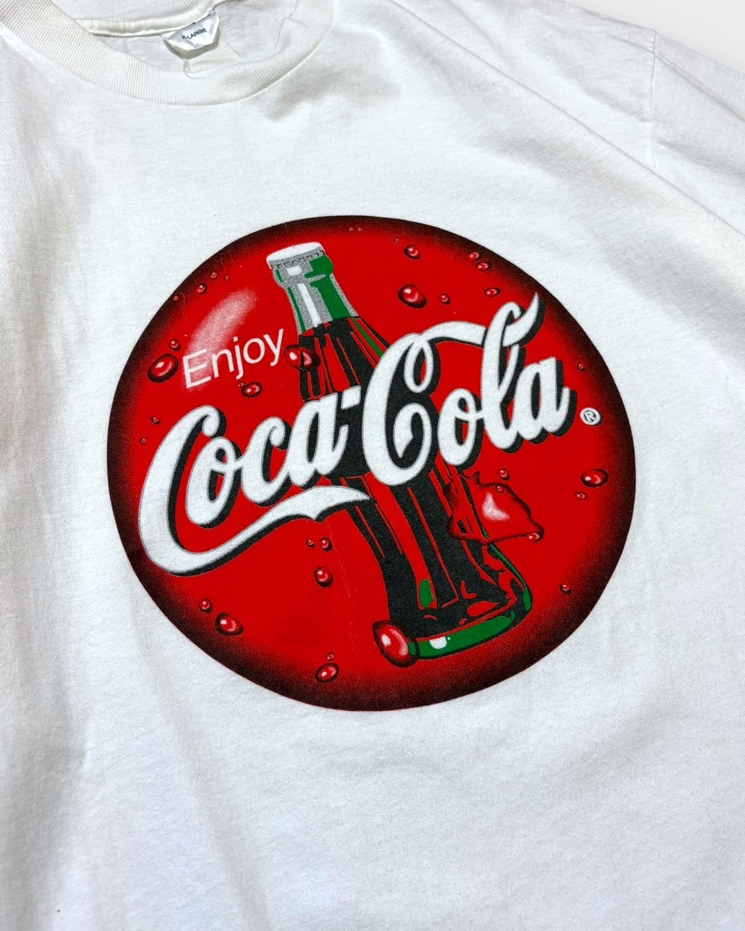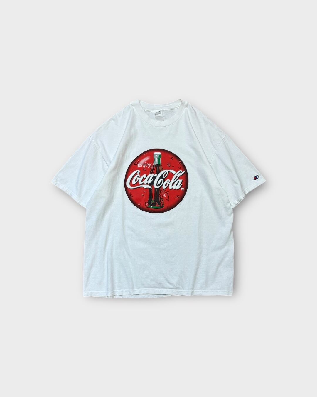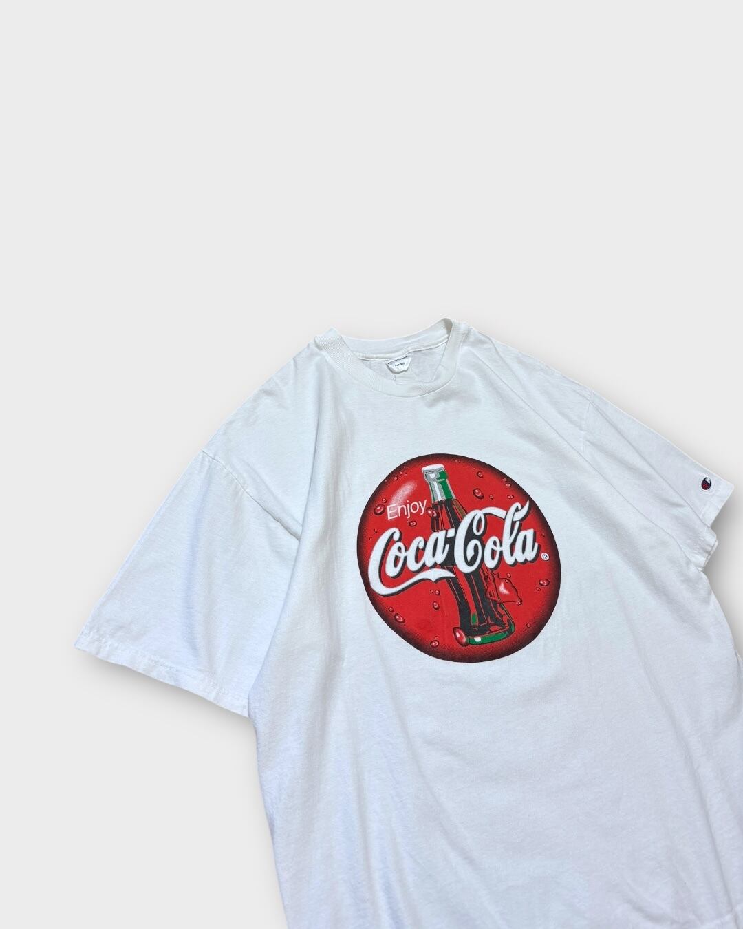 Championボディに、大きく「Enjoy Coca-Cola」ロゴをプリントした一枚。アイコン的なガラスボトルのデザインが、白ボディによく映えます。