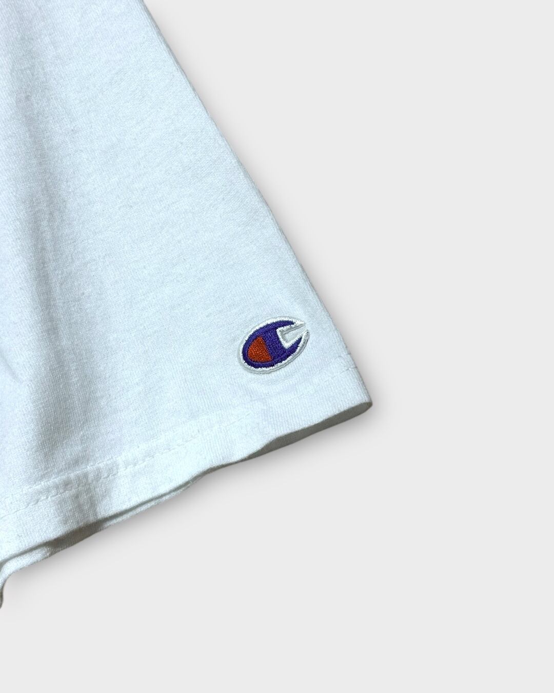 左袖にはChampionのロゴ刺繍入り。しっかりとした生地感で、古着らしい風合いも感じられます。