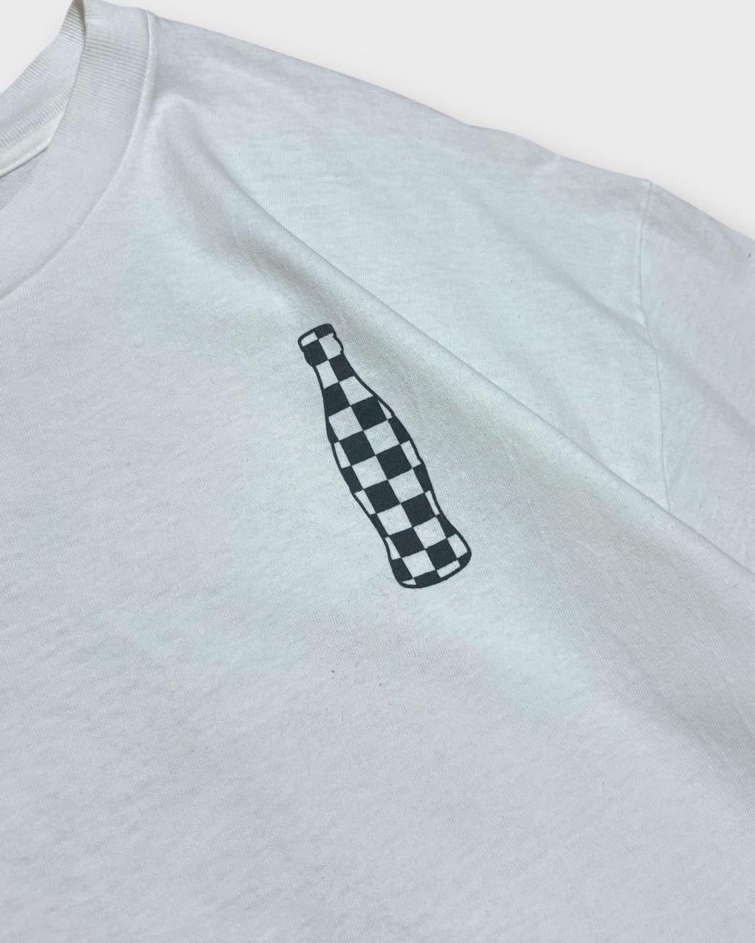 フロントにはチェッカーフラッグ柄のボトルアイコン、バックにはインパクトのあるロゴと「OFFICIAL SOFT DRINK OF NASCAR」のプリントが施されています。