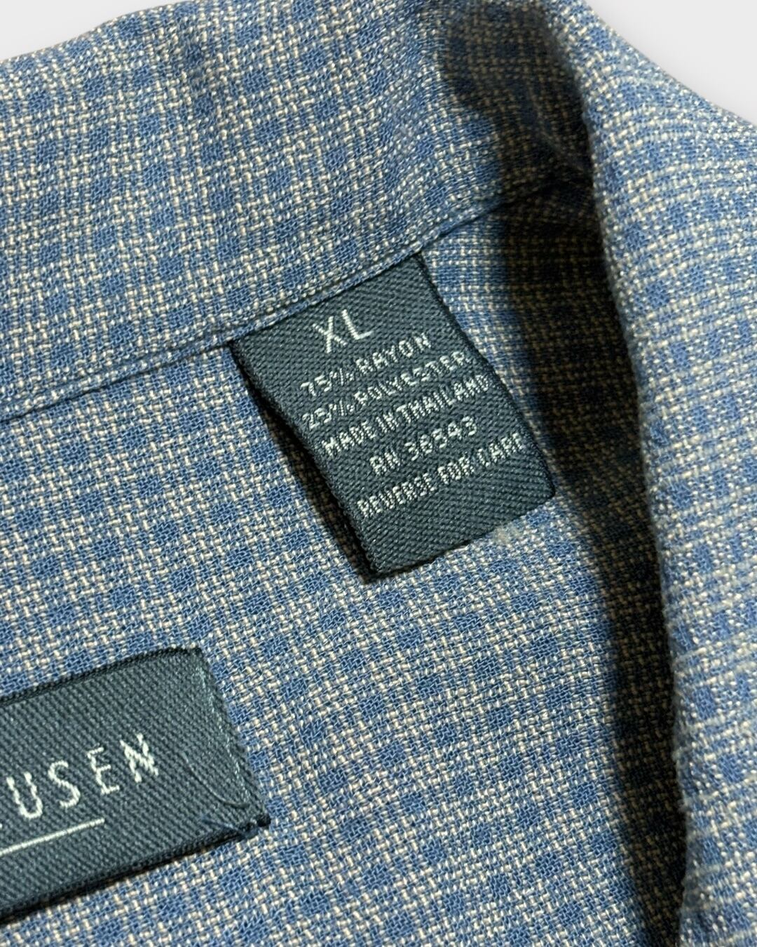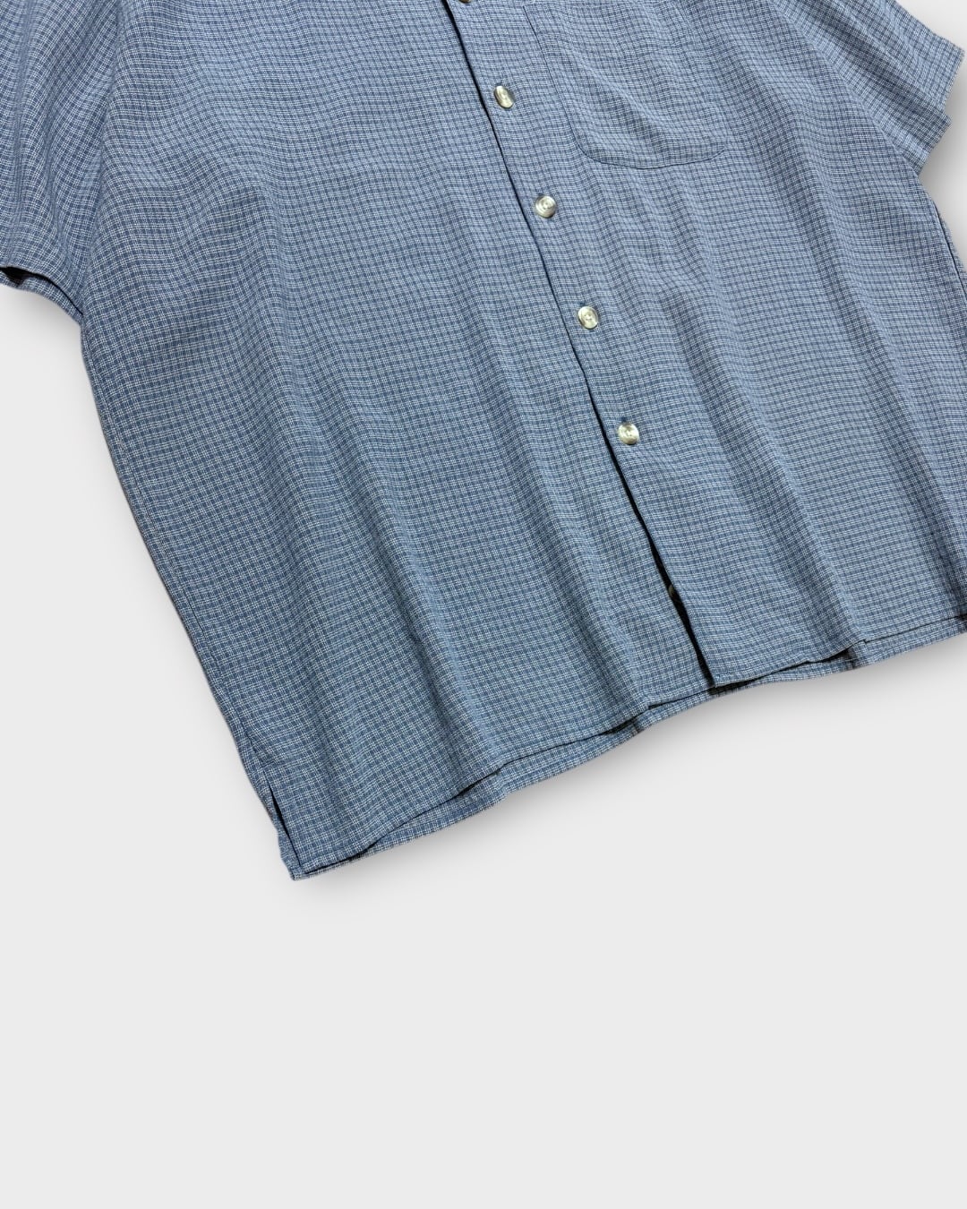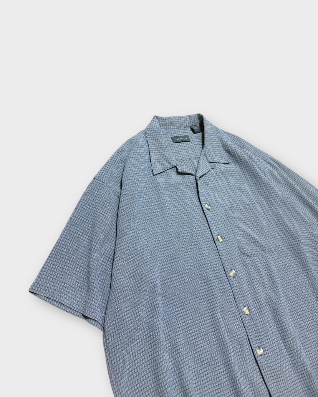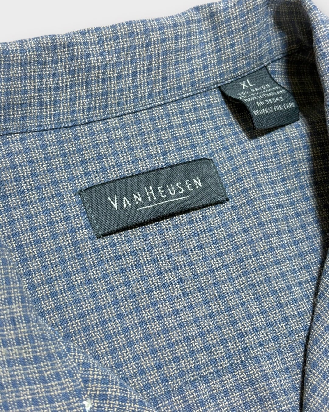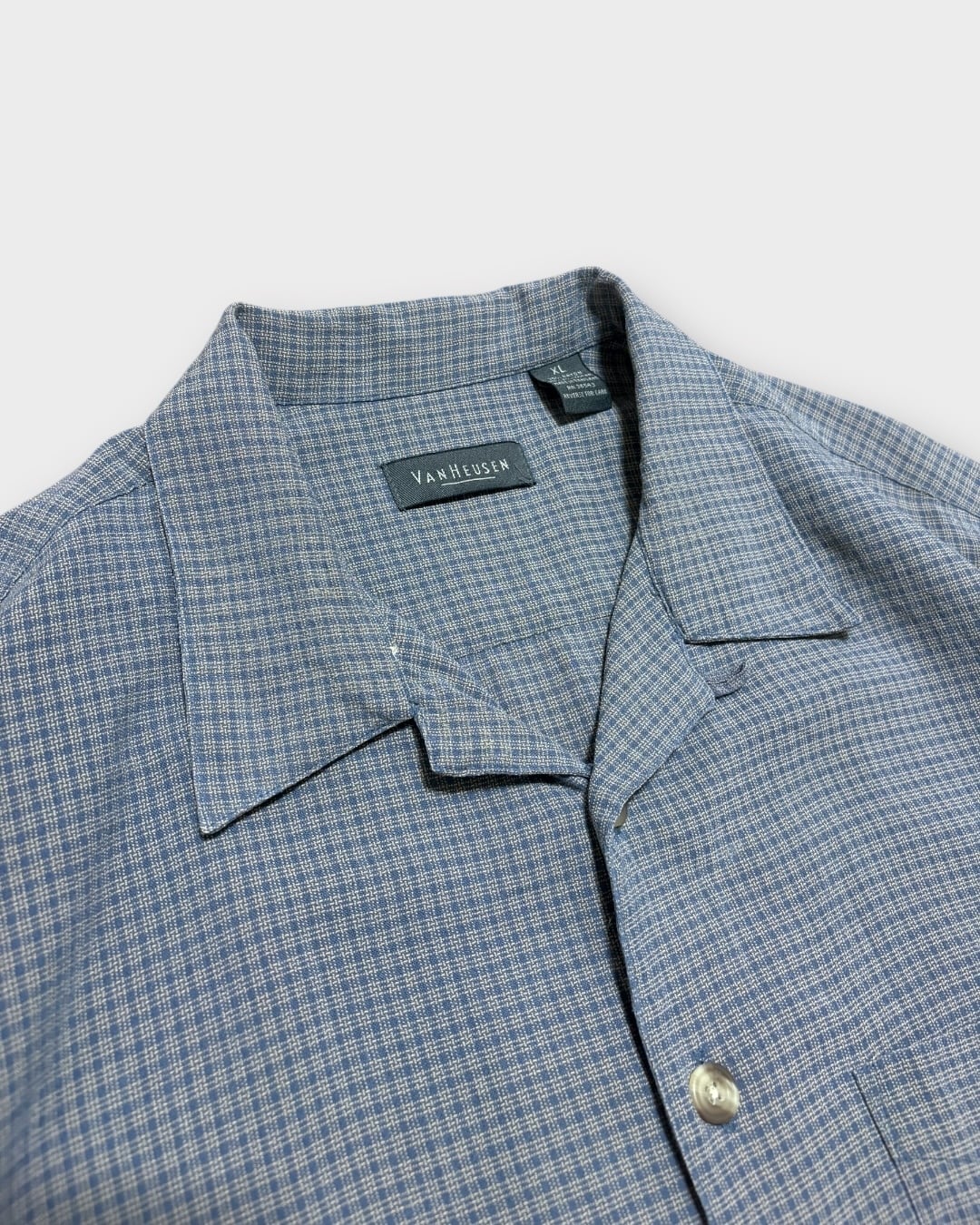 落ち着いたトーンの細かいチェック柄が魅力の、Van Heusenのオープンカラーシャツ。