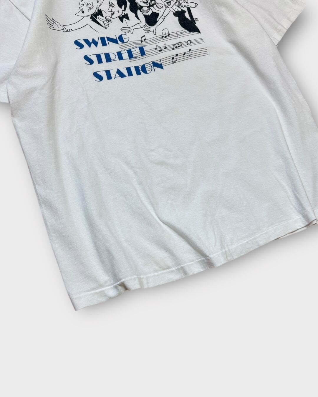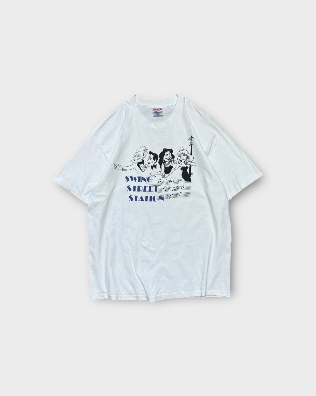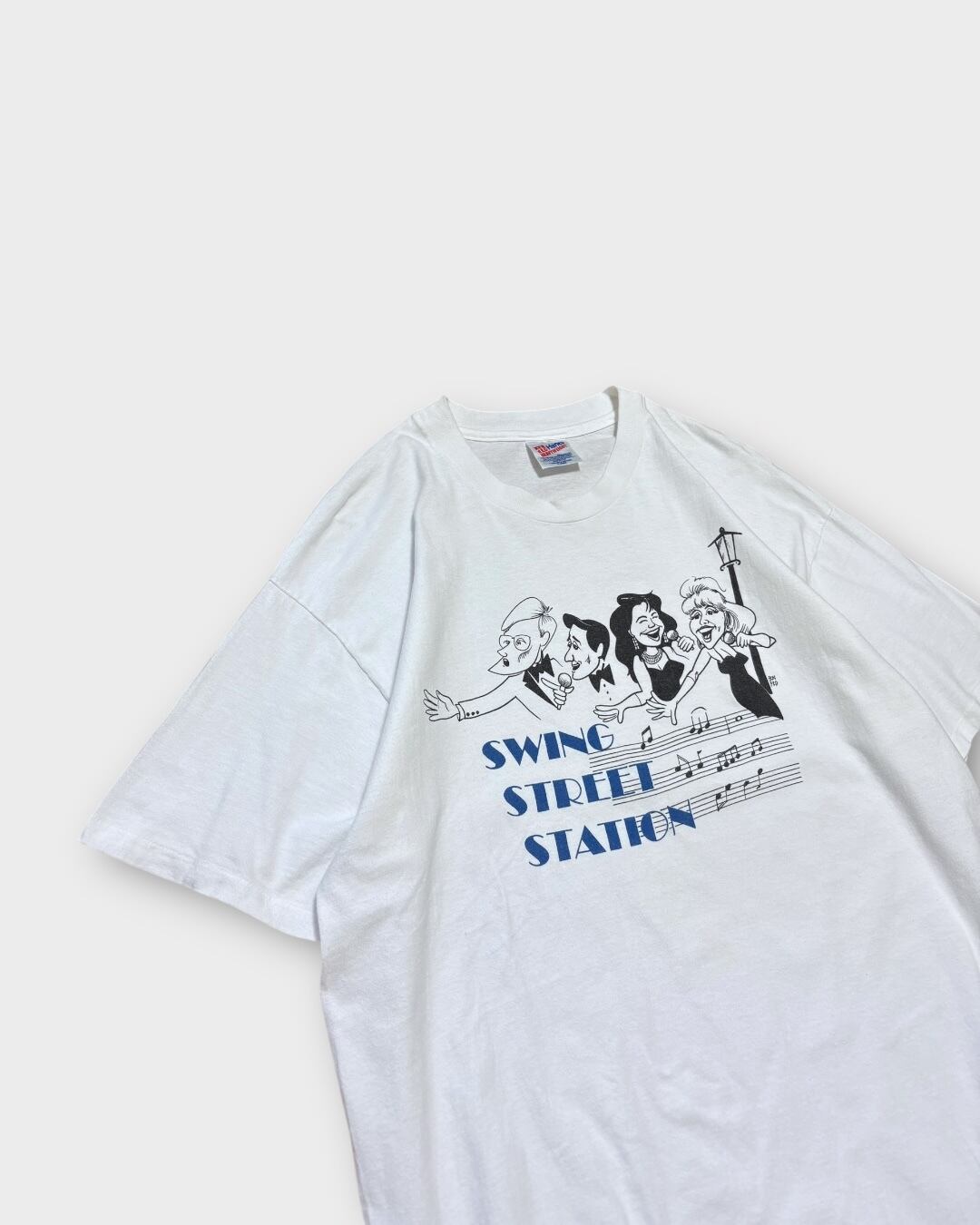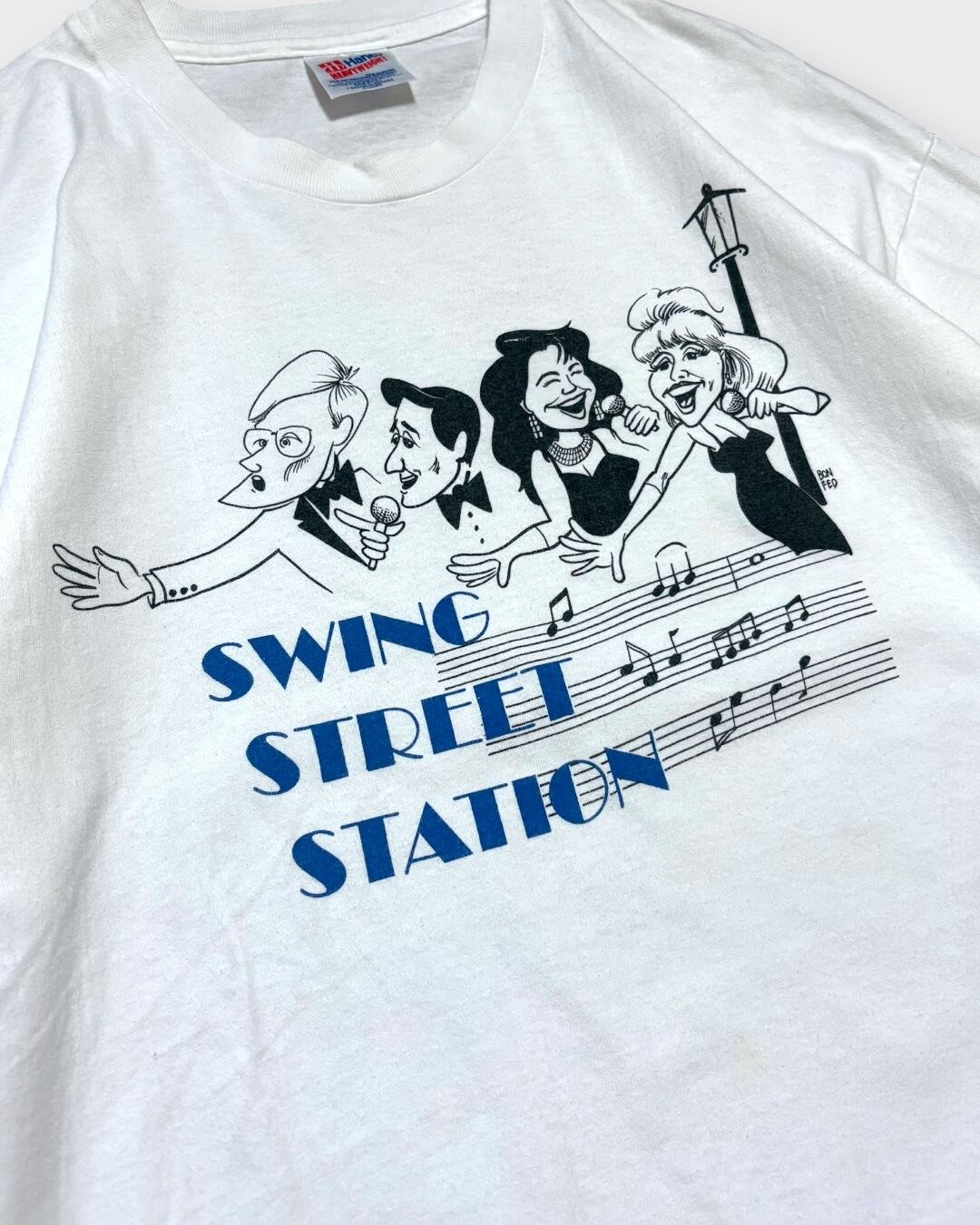 【VINTAGE】1990’s “Hanes” Swing Street Station Print T-Shirt Made in USA