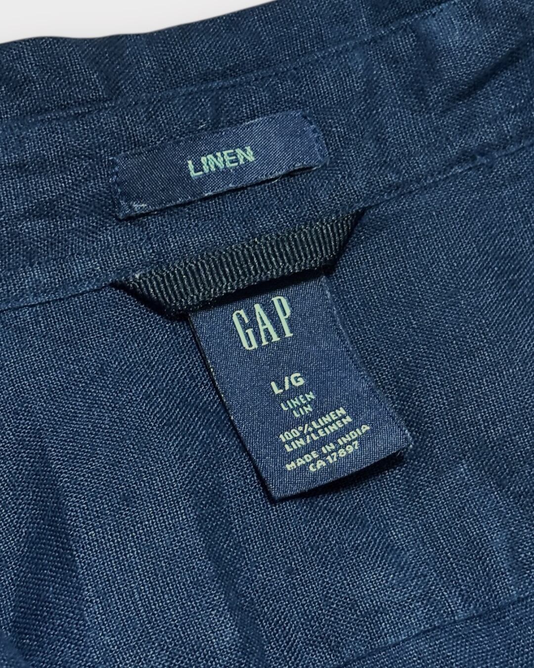 GAPのリネンプルオーバーシャツ。深みのあるネイビーカラーが上品で、リネン100%の涼やかで軽やかな素材感が魅力です。程よくゆとりのあるサイズ感で、リラックスした雰囲気に着ていただけます。