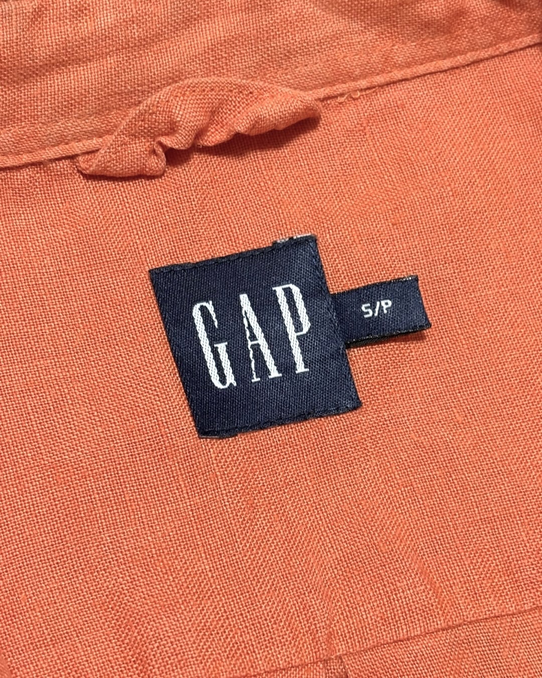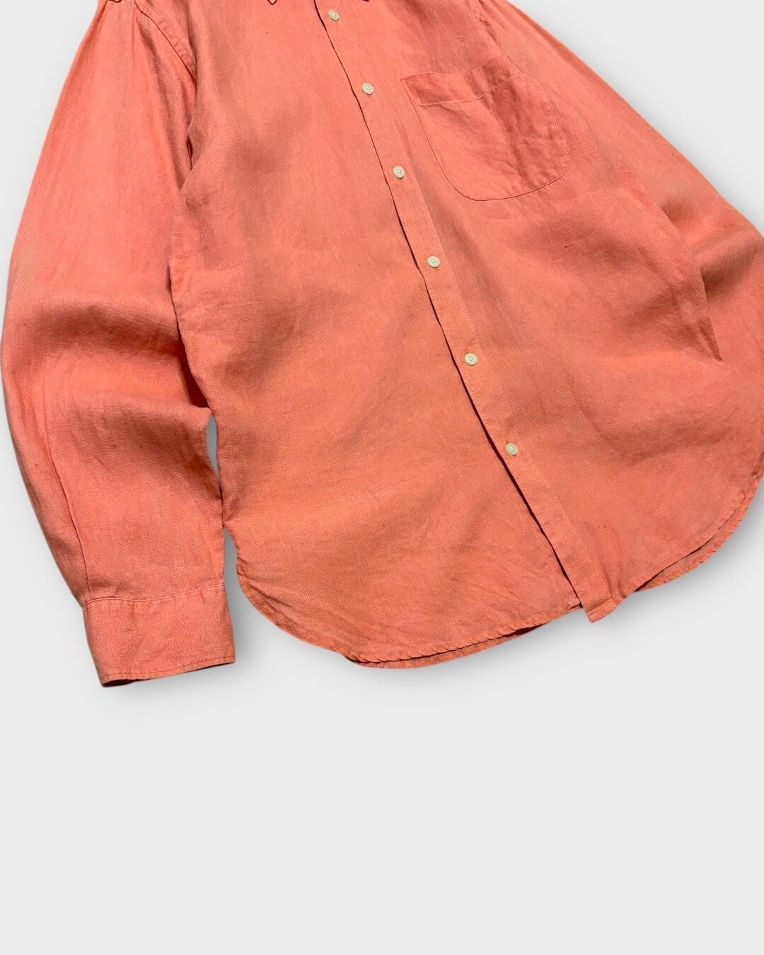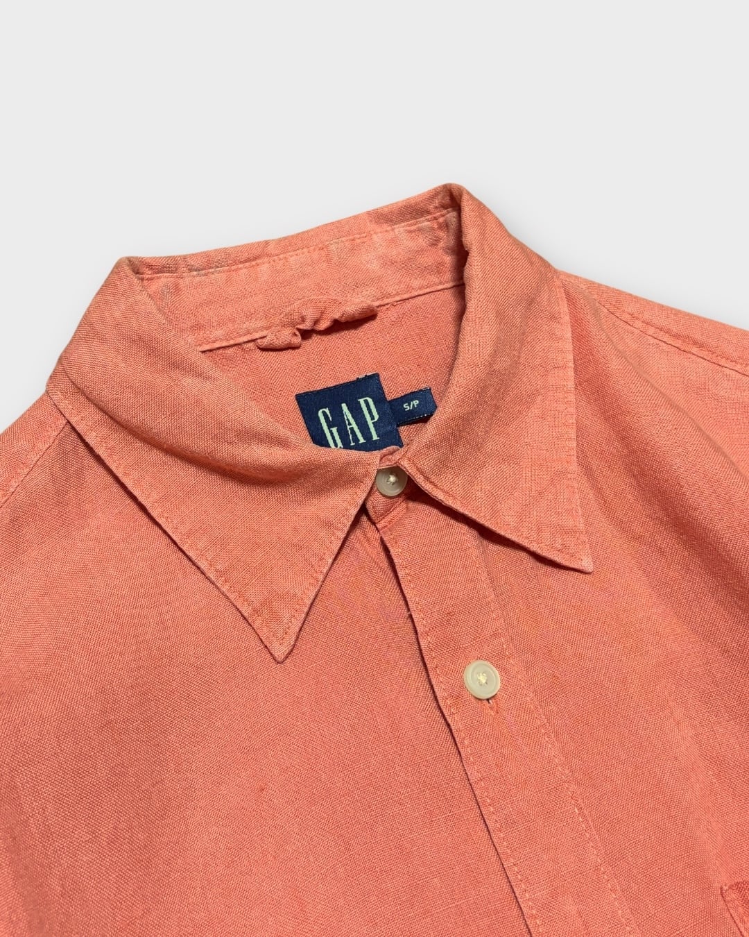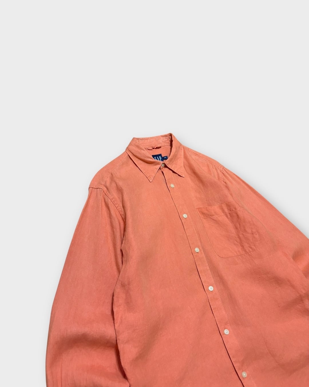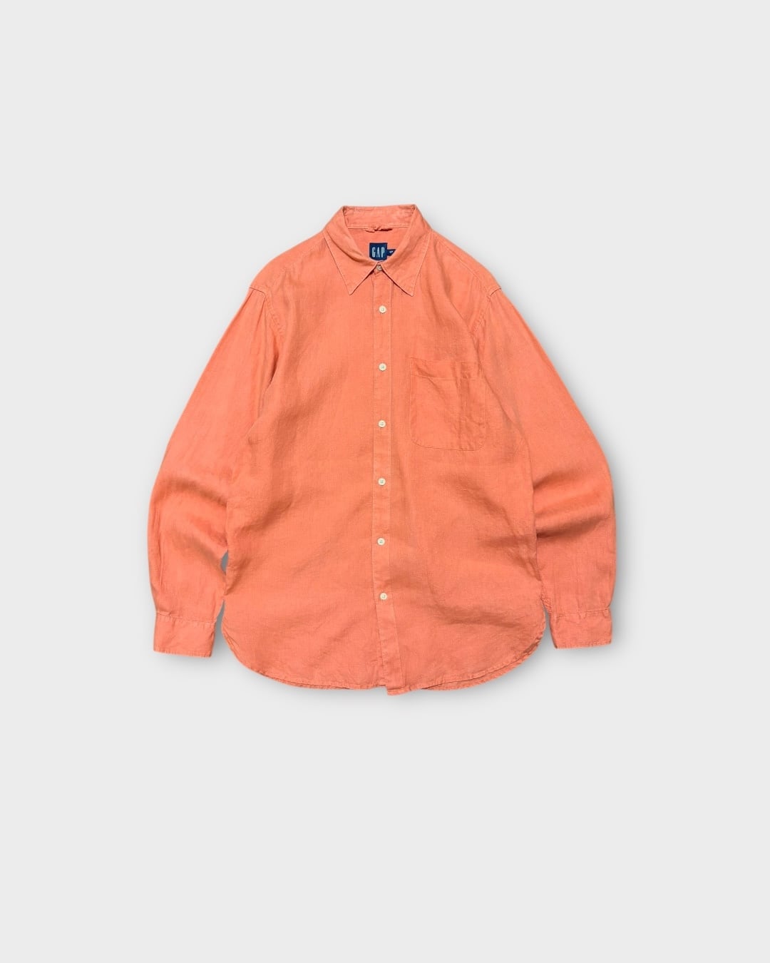 GAPのリネンシャツ。2000年代頃の一枚で、発色の良いコーラルオレンジが目を引きます。