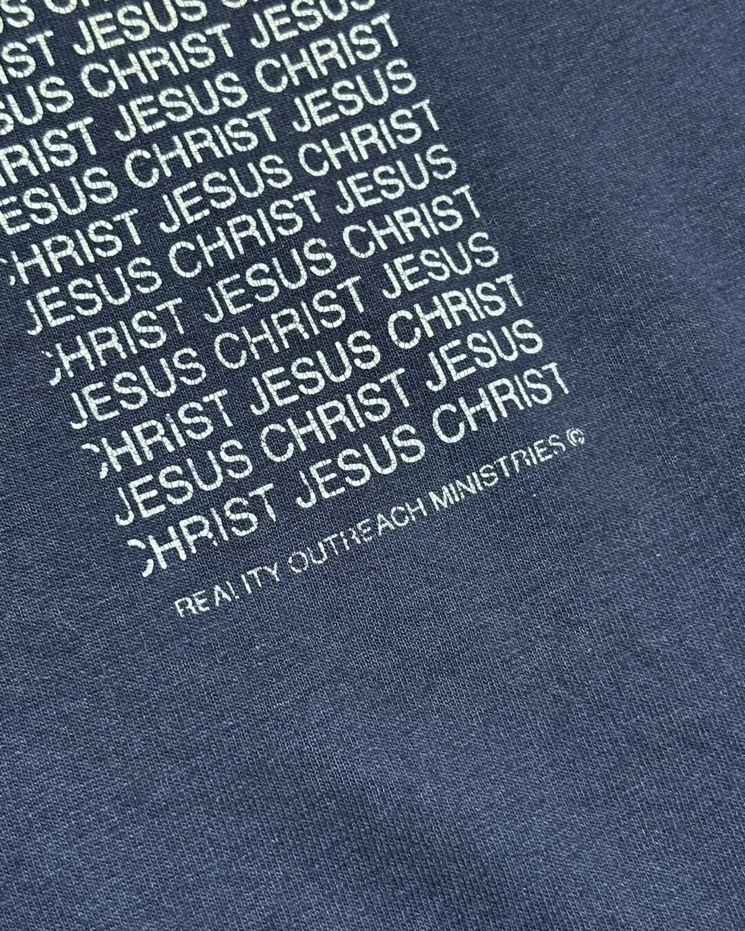 “JESUS CHRIST”の文字を無数に並べて配置し、中央にだけ「JESUS」の文字が浮かび上がる構成。