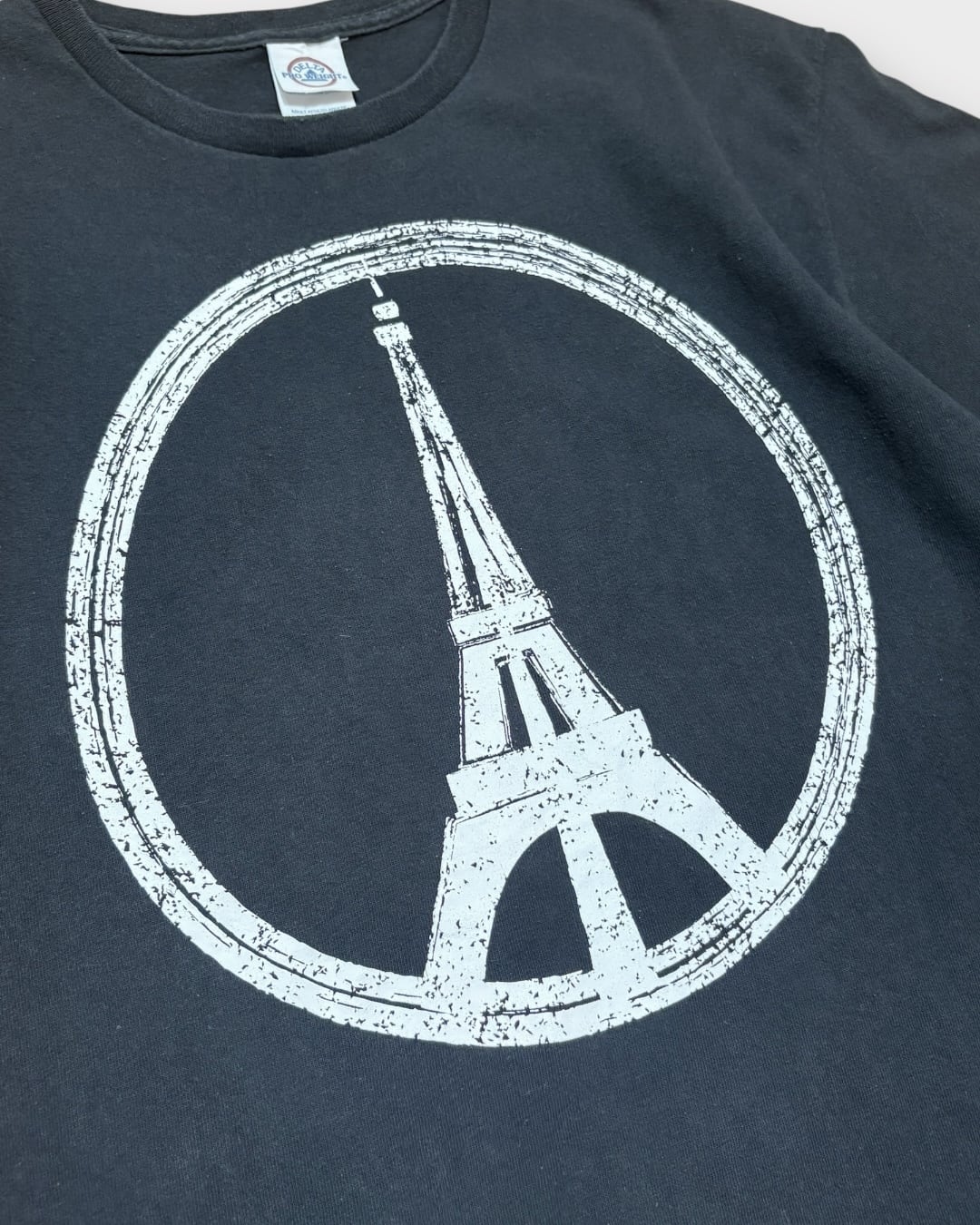 フロントに大きくプリントされた“Peace for Paris”モチーフのグラフィックTシャツ。
