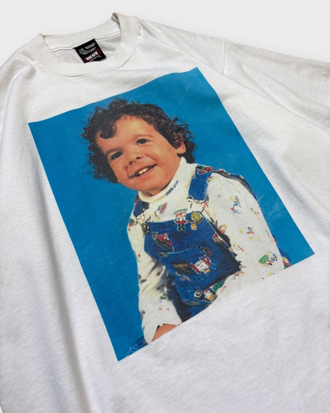 FRUIT OF THE LOOMのフォトTシャツ。通称“誰やねんT”と呼ばれるジャンルの、なんとも言えない表情のキッズフォトが魅力の一枚。