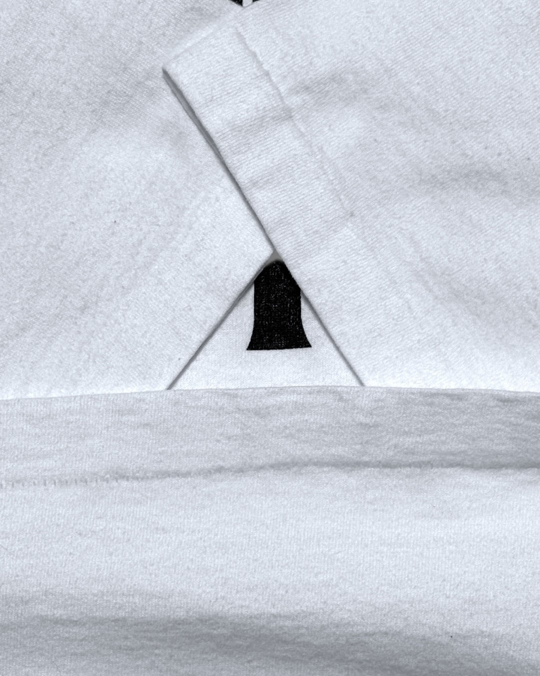 ボディはFRUIT OF THE LOOM製で、袖・裾ともにシングルステッチ。