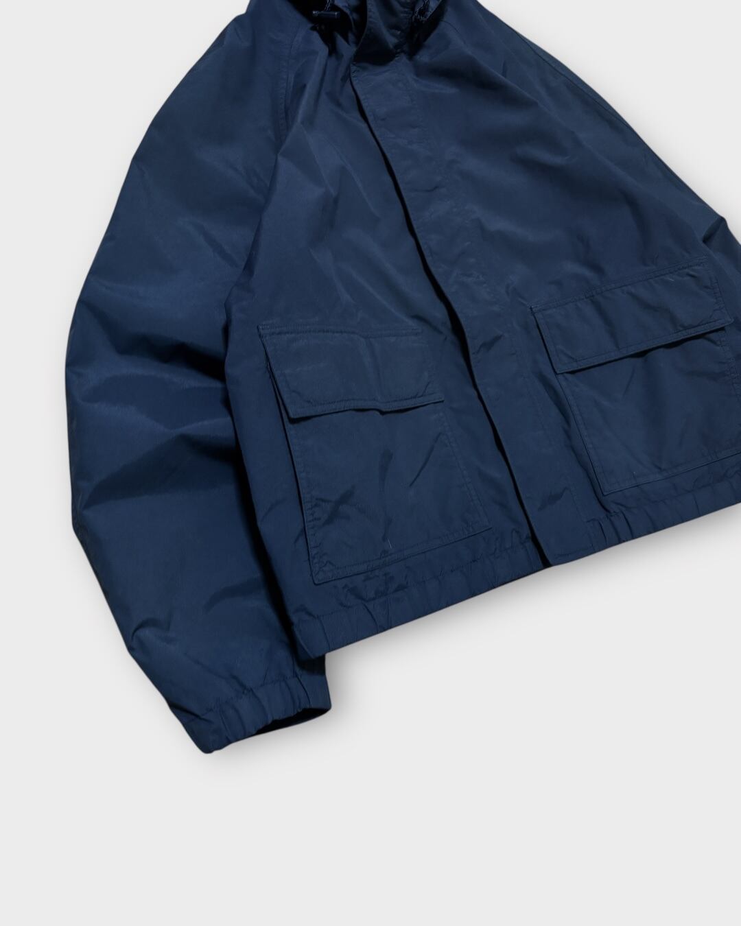90年代らしいワイドなシルエットとネイビーカラーが魅力の一着。
