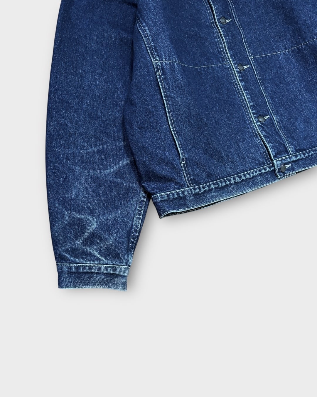 しっかり色残りのある濃紺インディゴで、メリハリのある袖のフェードも魅力的。