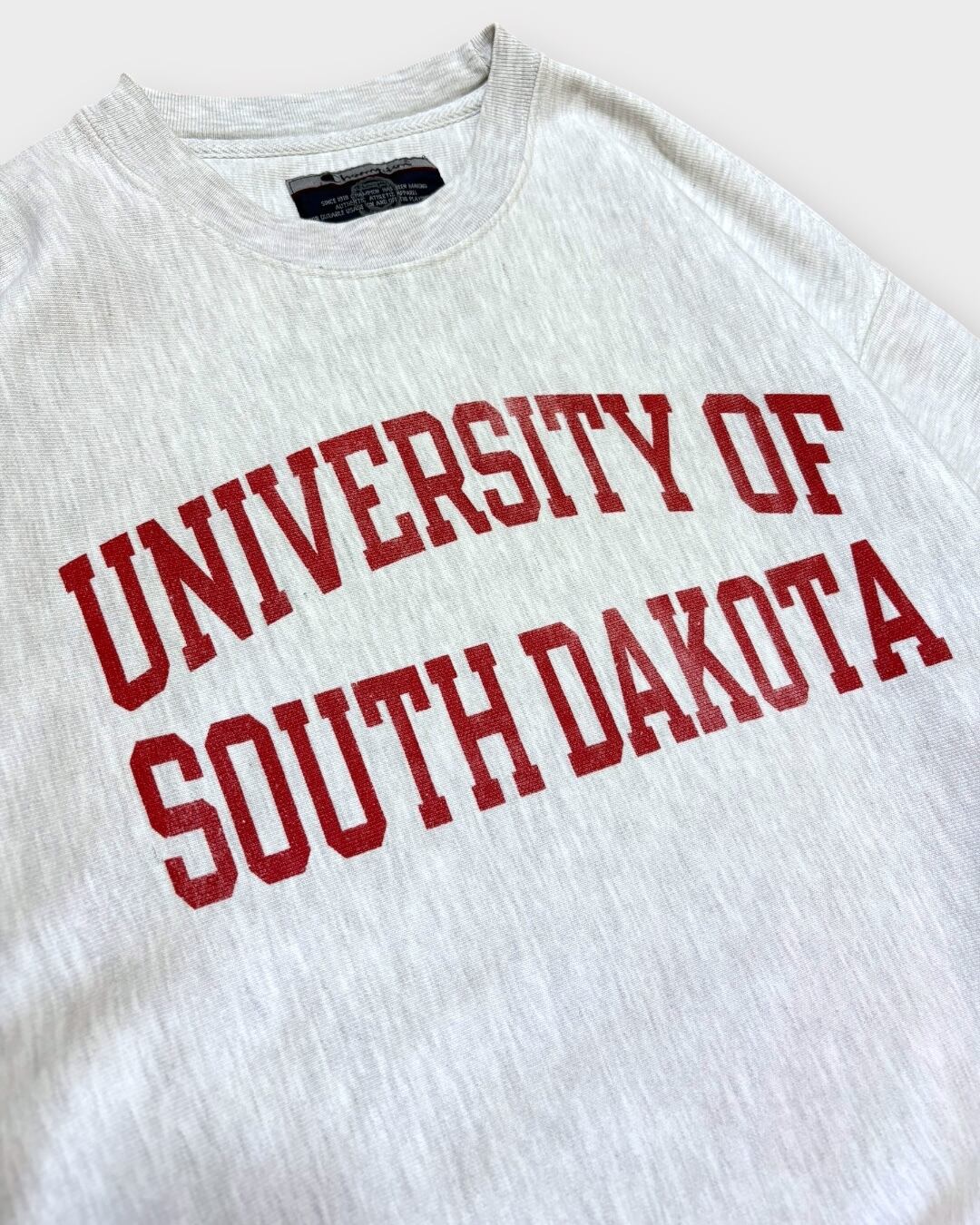 フロントに「UNIVERSITY OF SOUTH DAKOTA」のカレッジロゴを大きくプリントした、クラシックな一枚です。