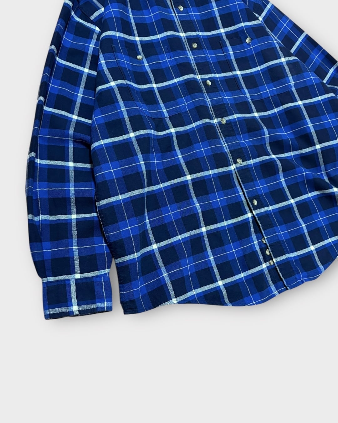 ブルー、ブラック、ホワイトのチェック柄が映える1枚。