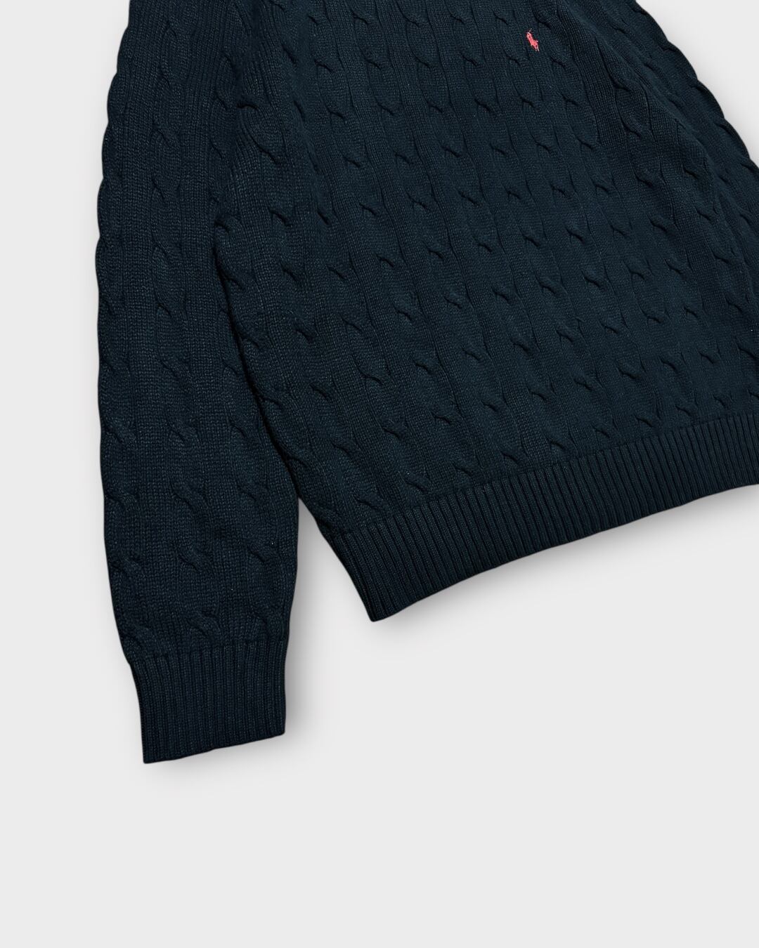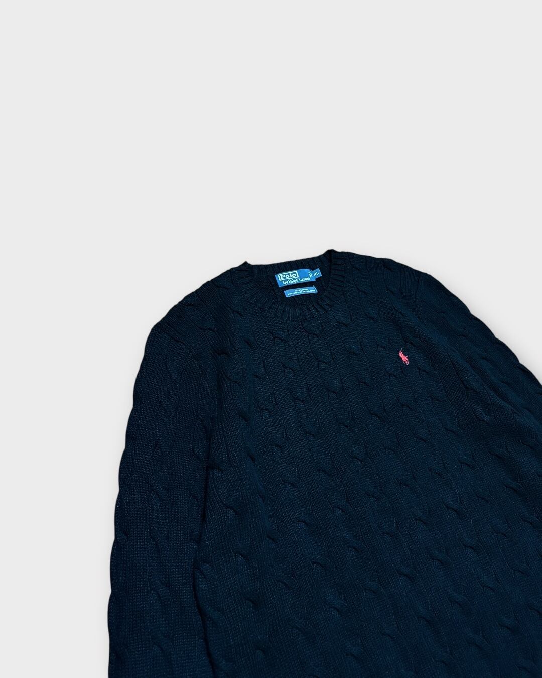【Used】“Polo by Ralph Lauren” Cable Cotton Knit Sweater Black × Red Pony