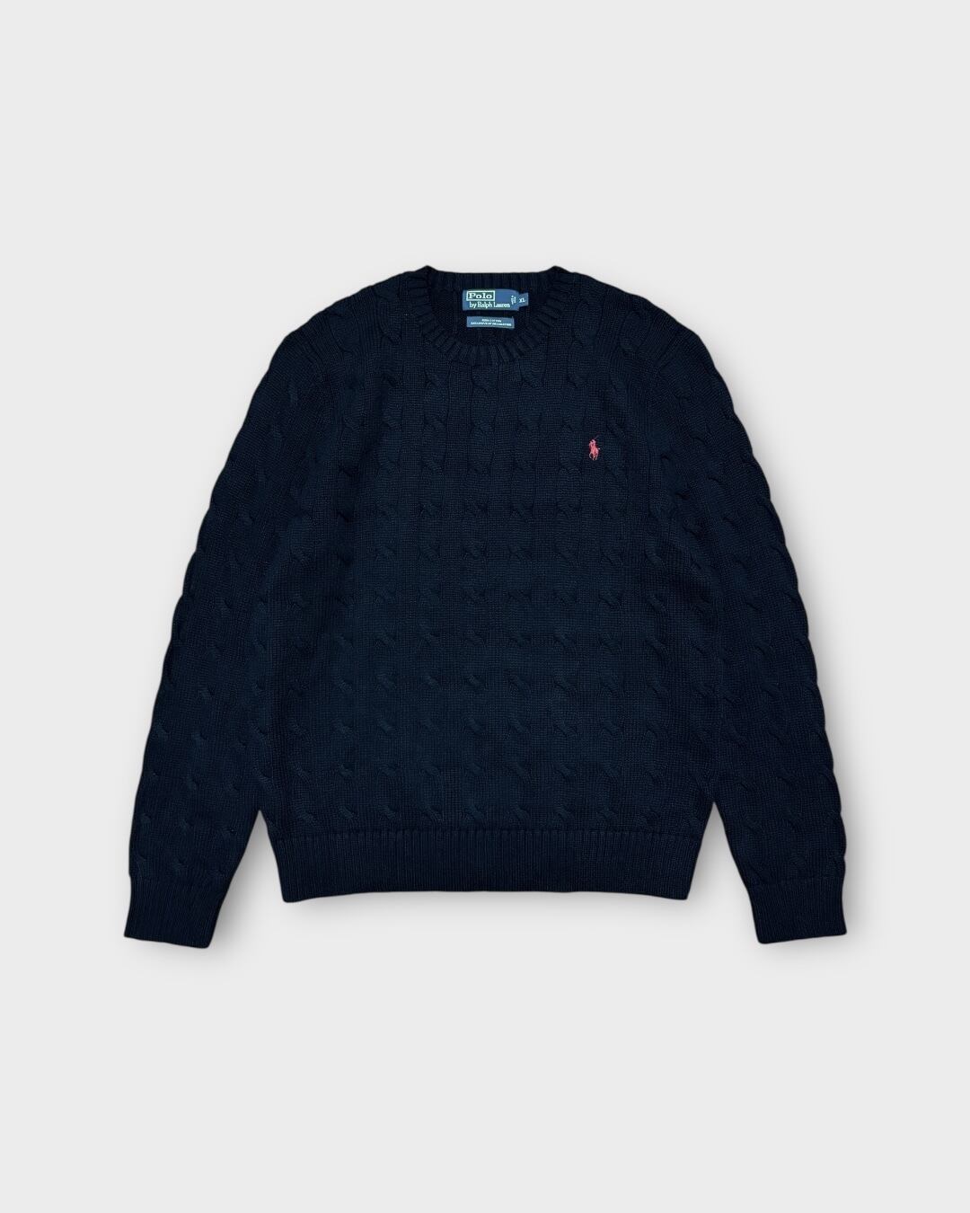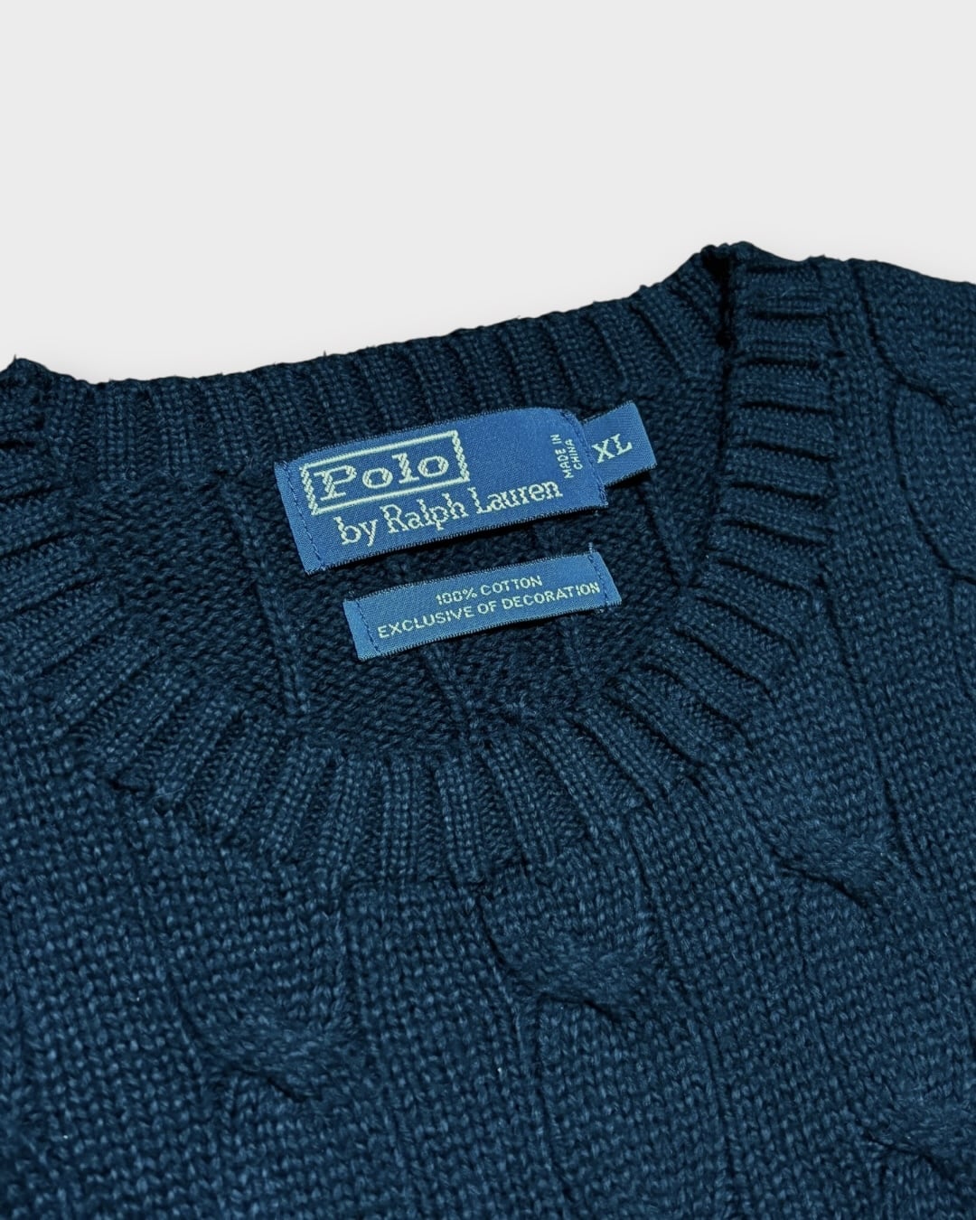 “Polo by Ralph Lauren” のケーブル編みコットンニットセーター。