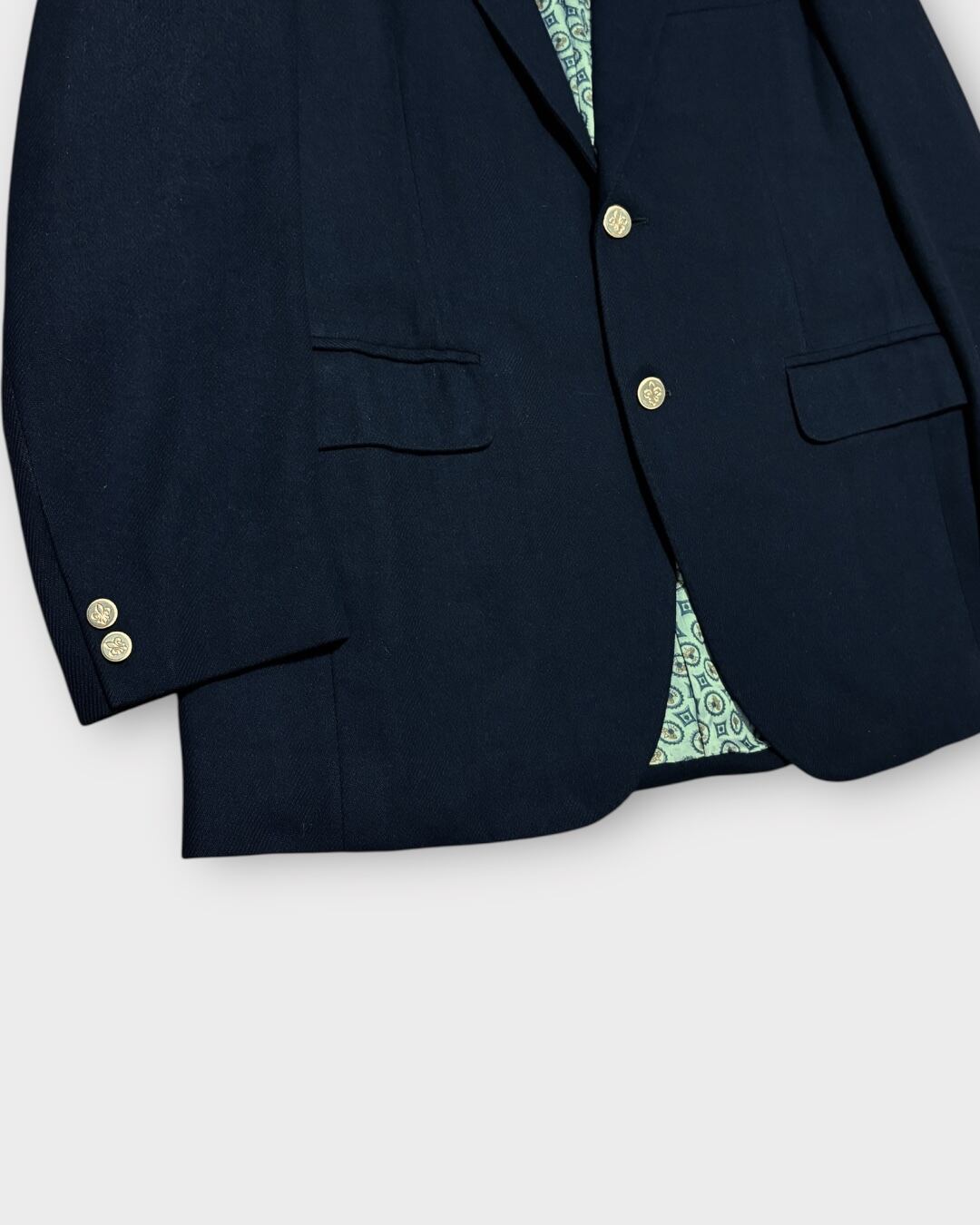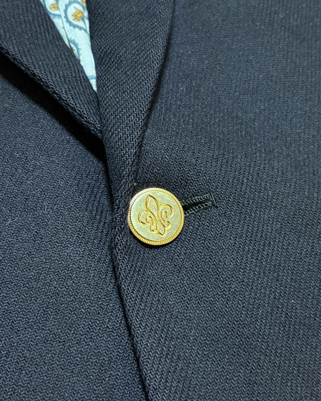 フロントと袖口には、フルール・ド・リスを刻印した上品な金ボタンを採用。