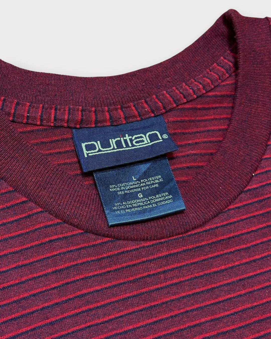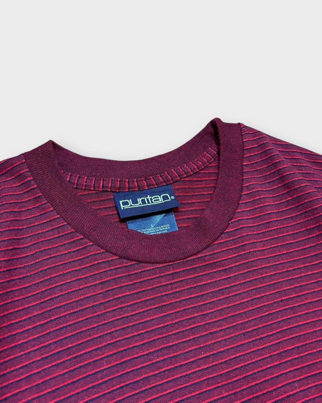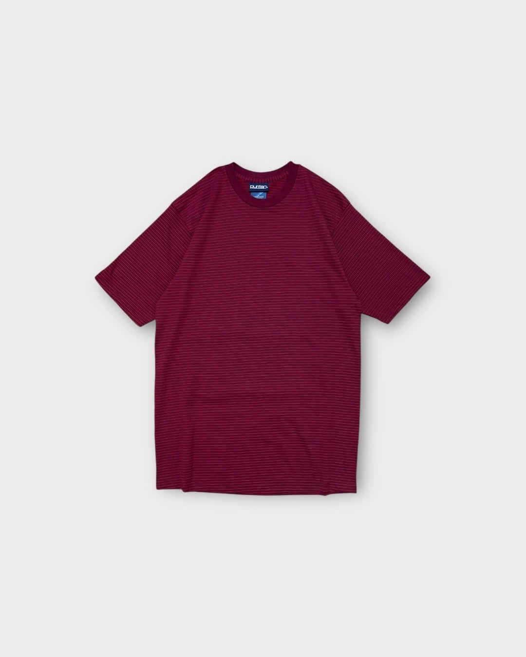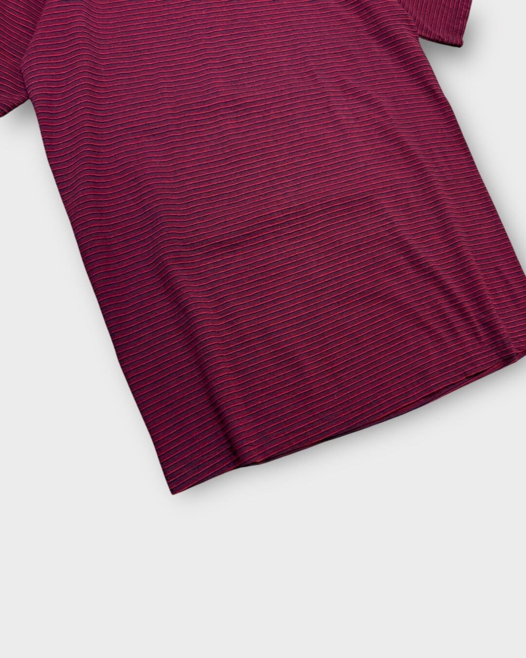 深みのあるバーガンディをベースに、ブラックの細ピッチボーダーが映える配色。