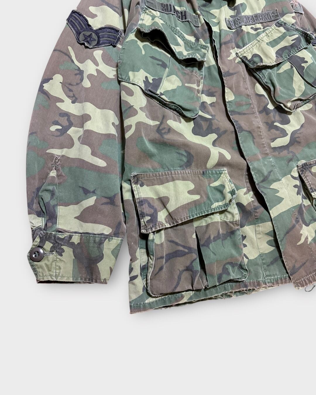 実用由来のダメージを含む雰囲気系の個体で、USAFテープや階級章の残りがストーリーを感じさせます。サイズは貴重なSmall Short相当。