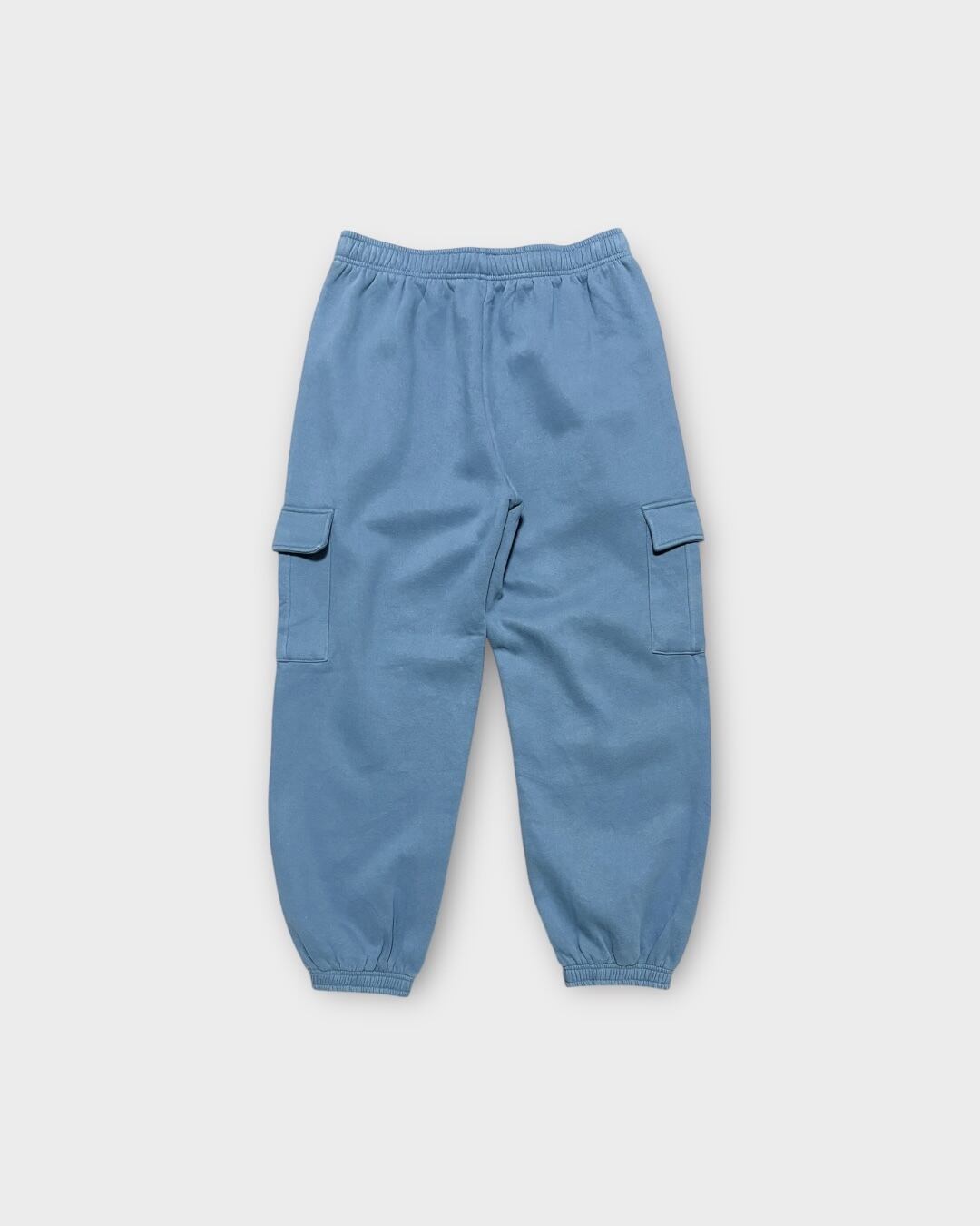 スモーキーブルーの落ち着いたカラーが魅力のスウェットカーゴパンツ。
