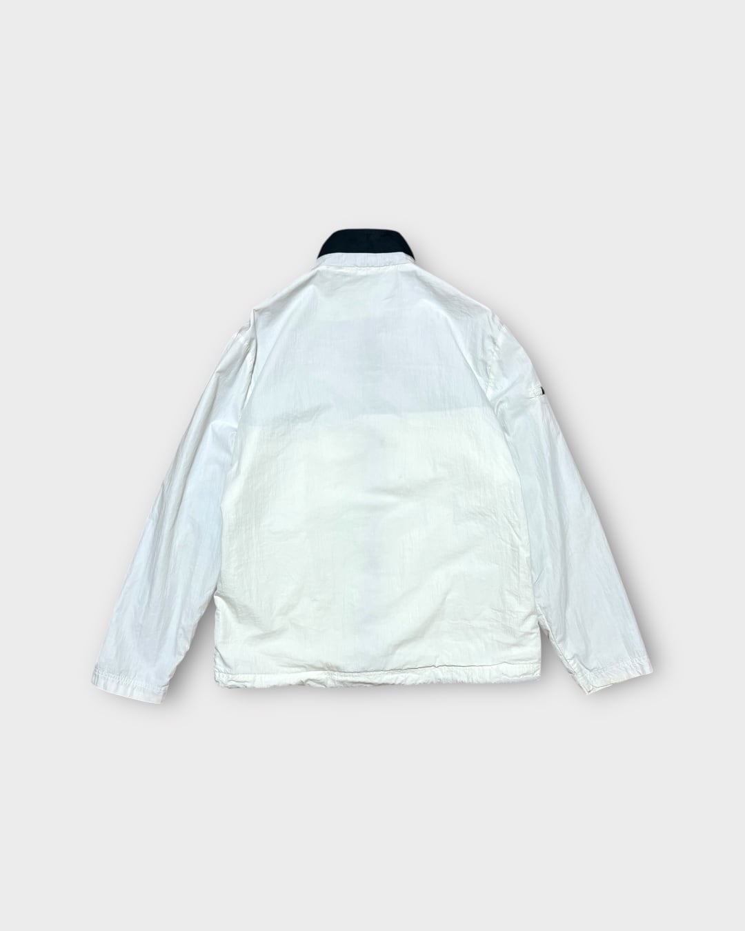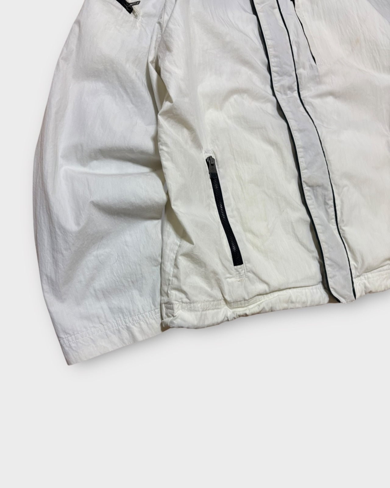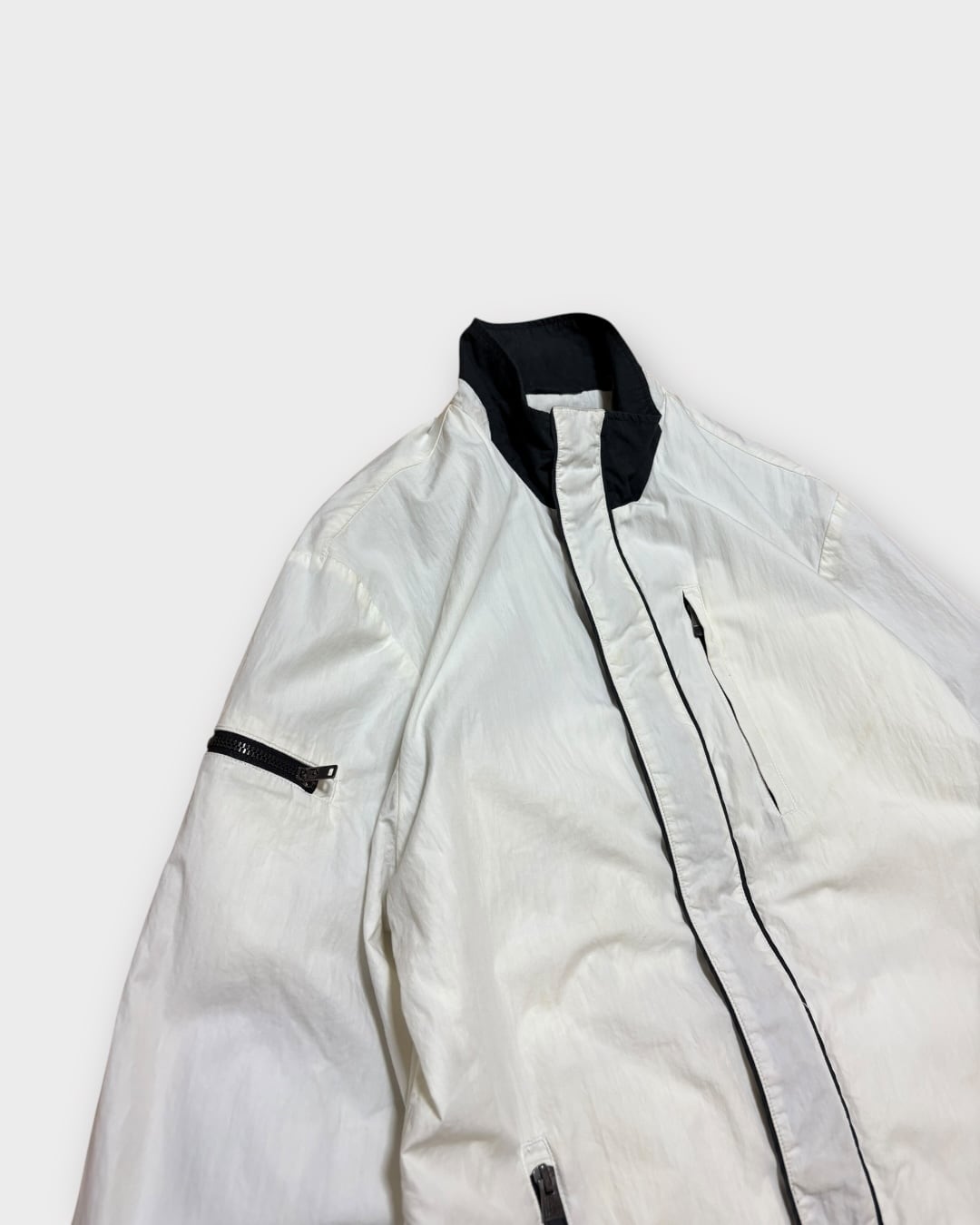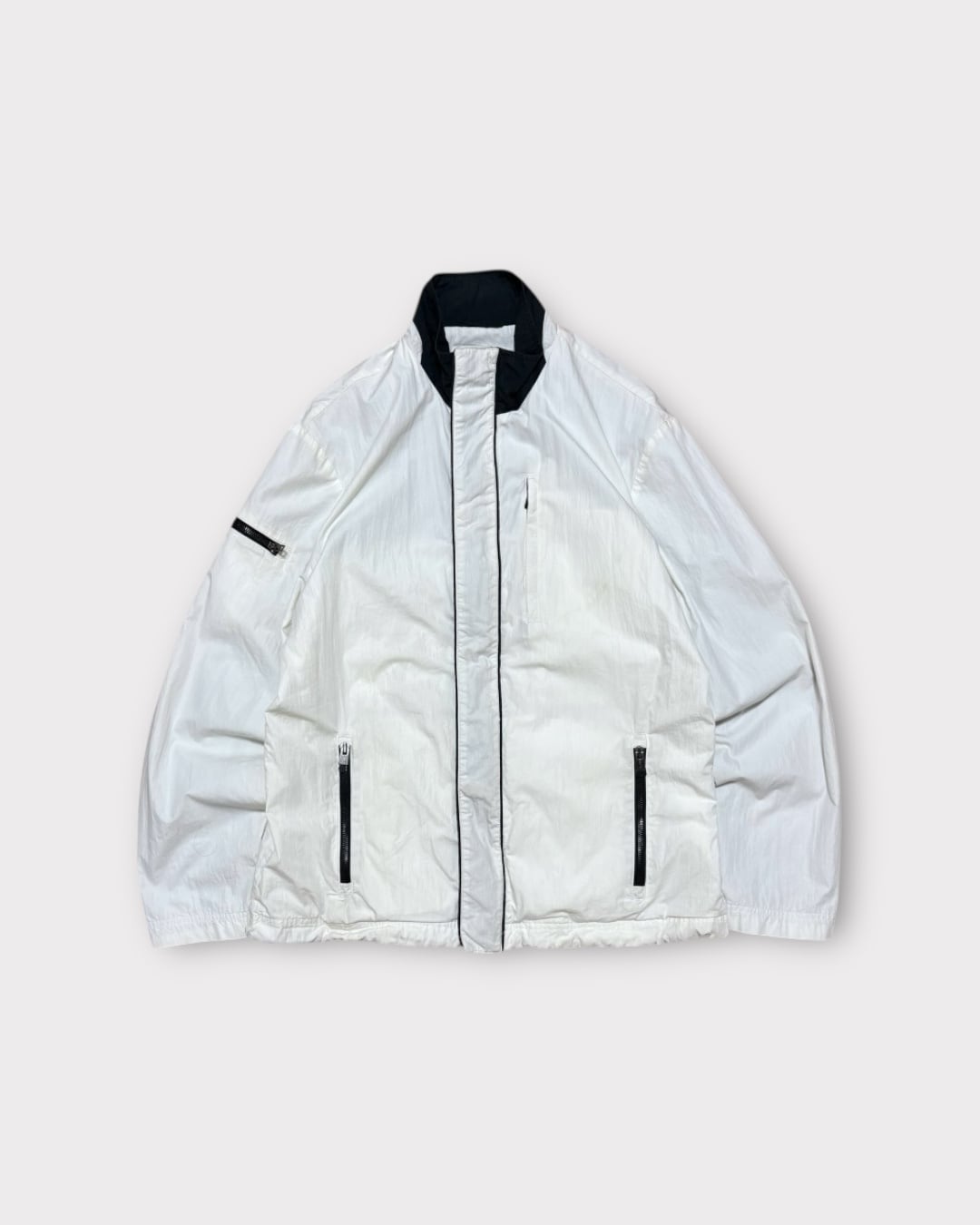 ホワイトベースにブラックの切替&ジップラインが映えるミニマルなデザイン。