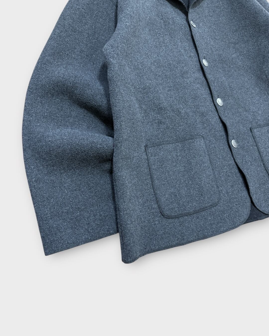 ウール混のしっかりとしつつも程よい厚みの生地で、秋冬の羽織りとして快適に着用できます。