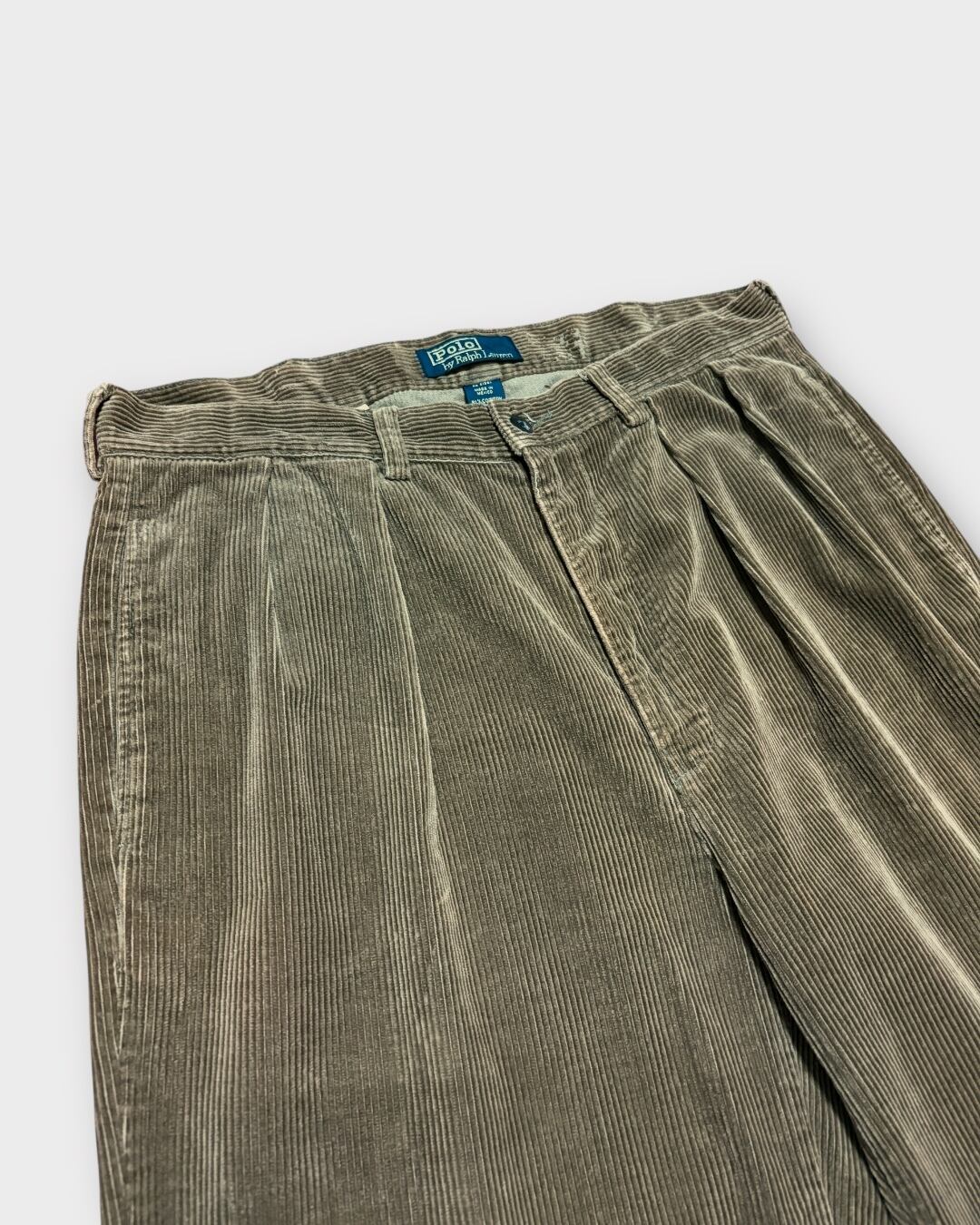 【VINTAGE】1990’s “Polo by Ralph Lauren” 2-Tuck Corduroy Trousers Olive MADE IN MEXICO