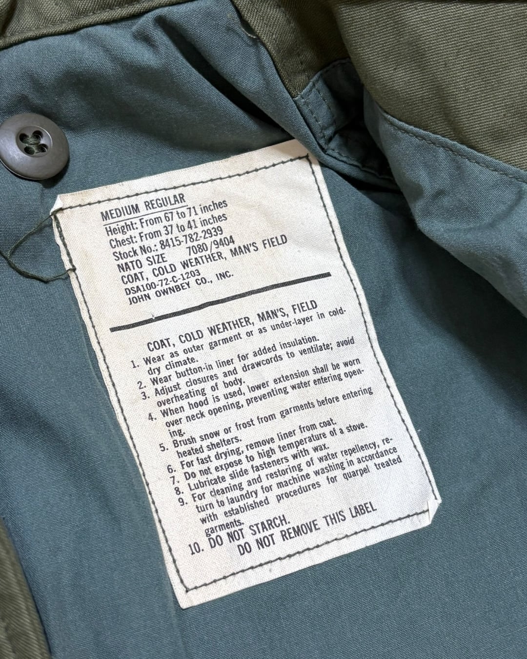 1972年製 “U.S. Army” M-65 フィールドジャケット。
