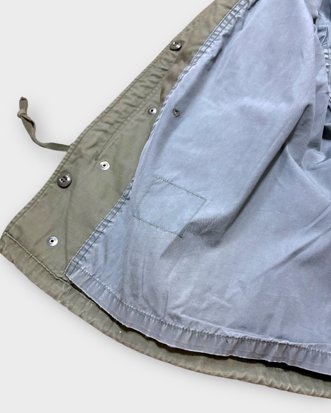 リペアや裏地のほつれはありますが、着用には問題なくミリタリーものとしては良いコンディション。Small-Short相当のバランスで街着としても取り回しがよく、コレクションと実用を兼ねた一着です。