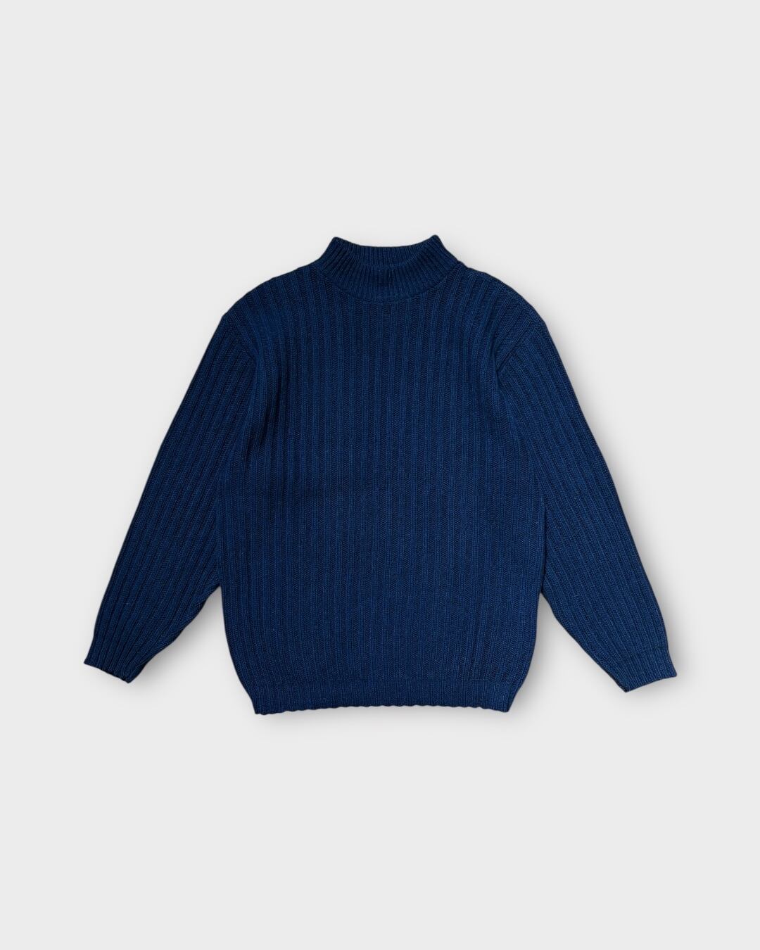 【VINTAGE】1960’s “BENSON-RIXON” Lambswool Mock Neck Rib Knit Sweater Navy