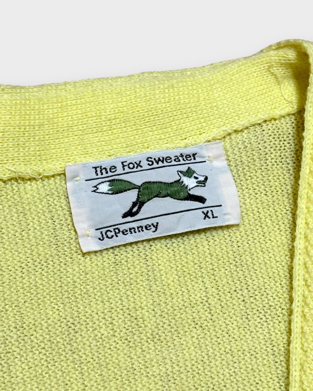 【VINTAGE】1980’s “JCPenney The Fox Sweater” Acrylic Cardigan Yellow