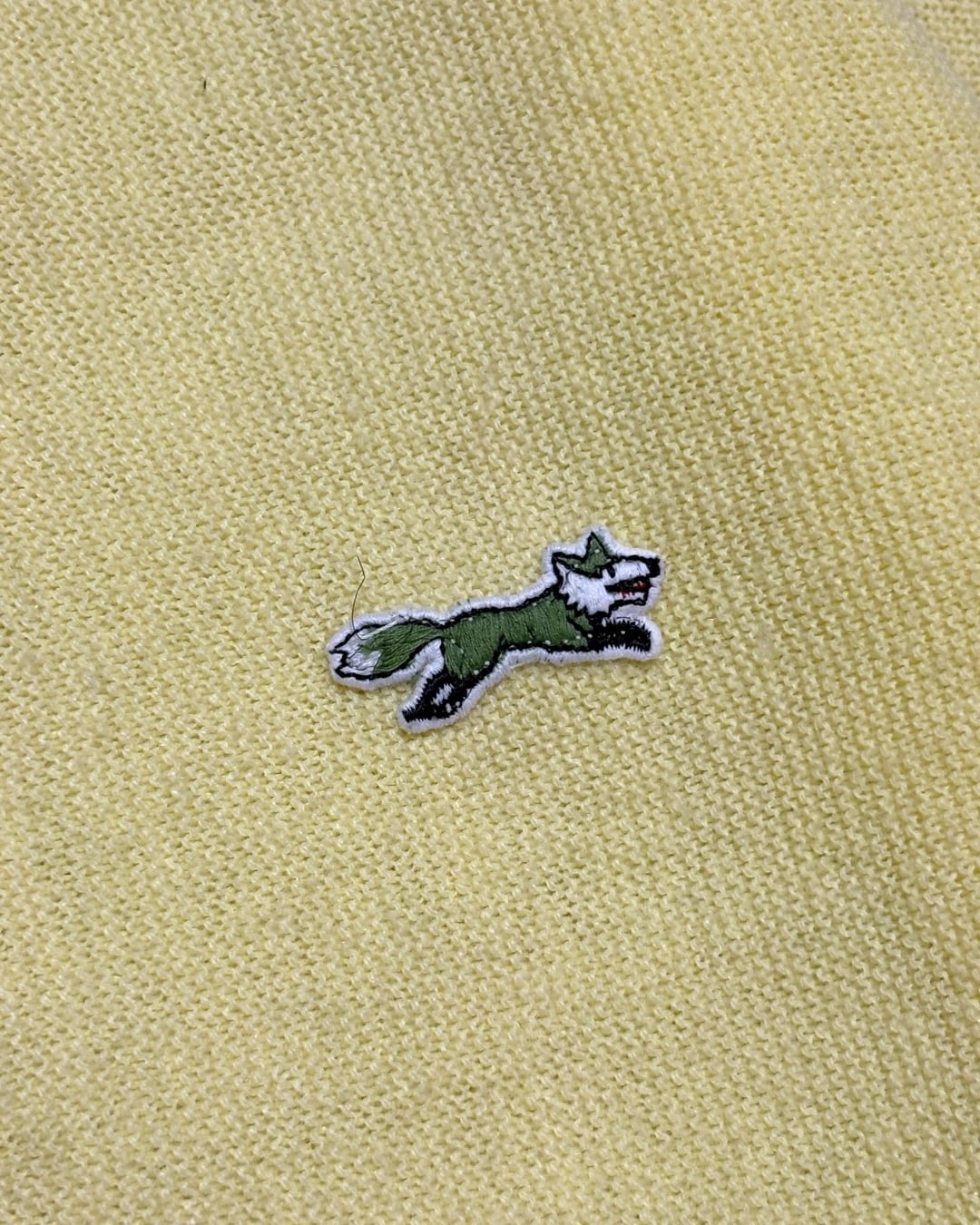 鮮やかなイエローカラーに、胸元のグリーンのフォックス刺繍が映える一枚。