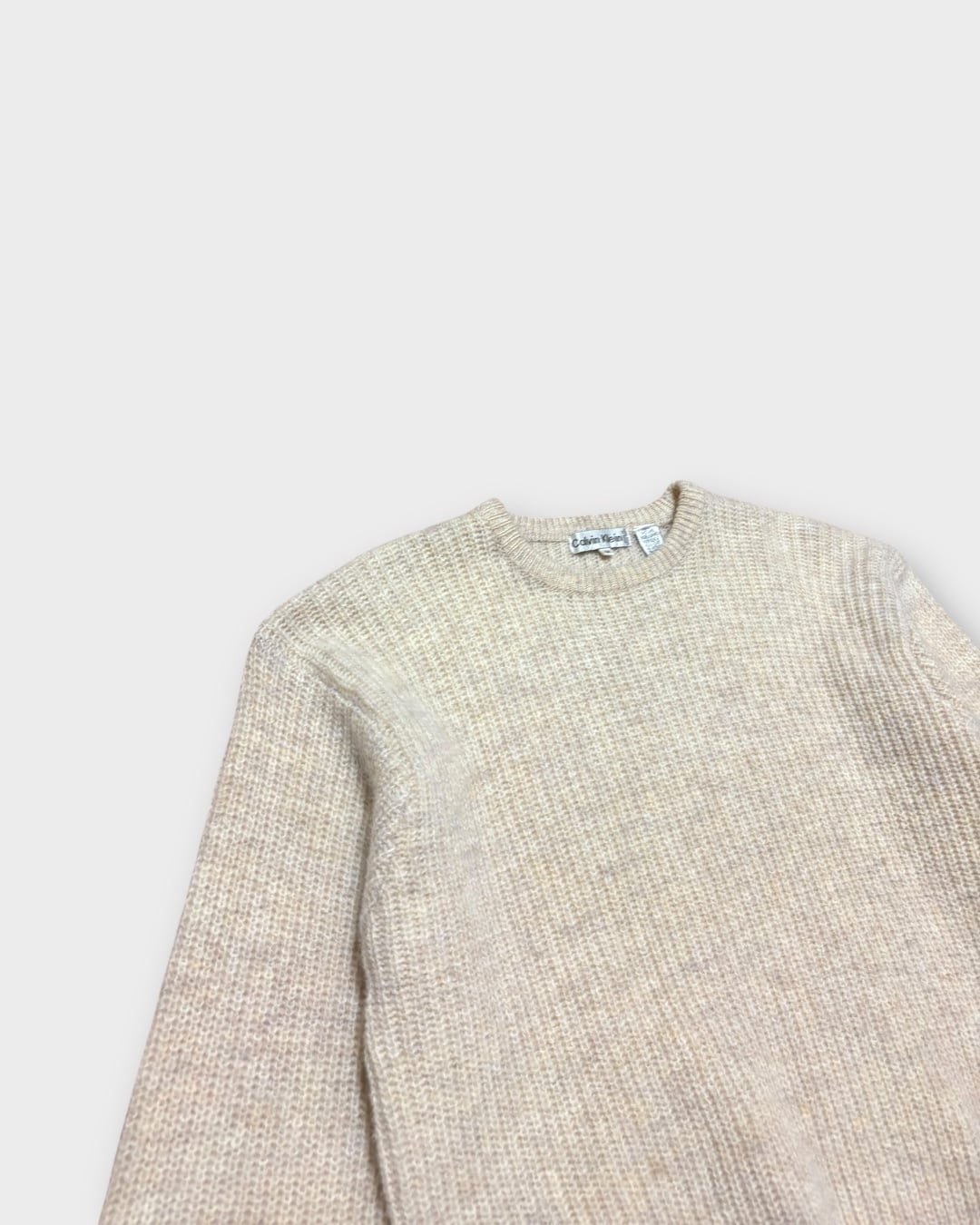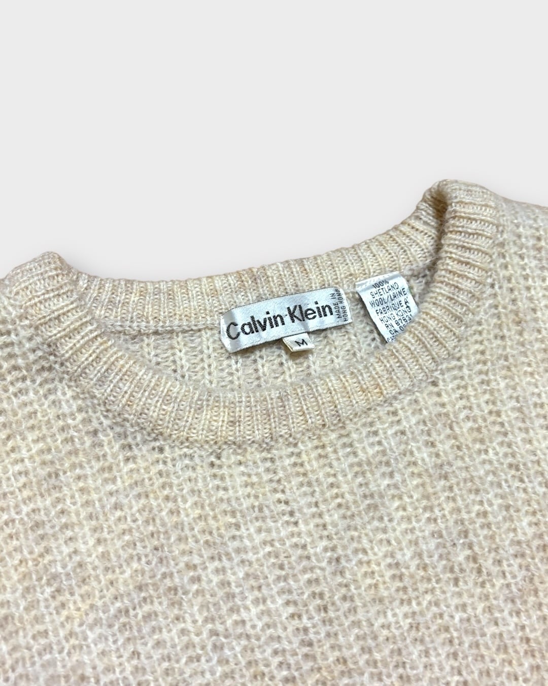 【VINTAGE】1980’s “Calvin Klein” Shetland Wool Knit Sweater Ivory Mix