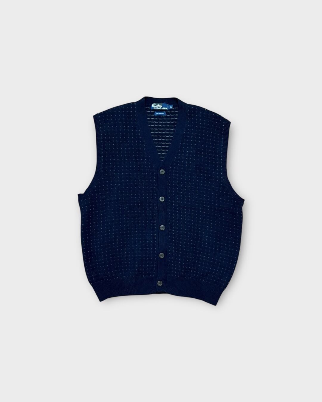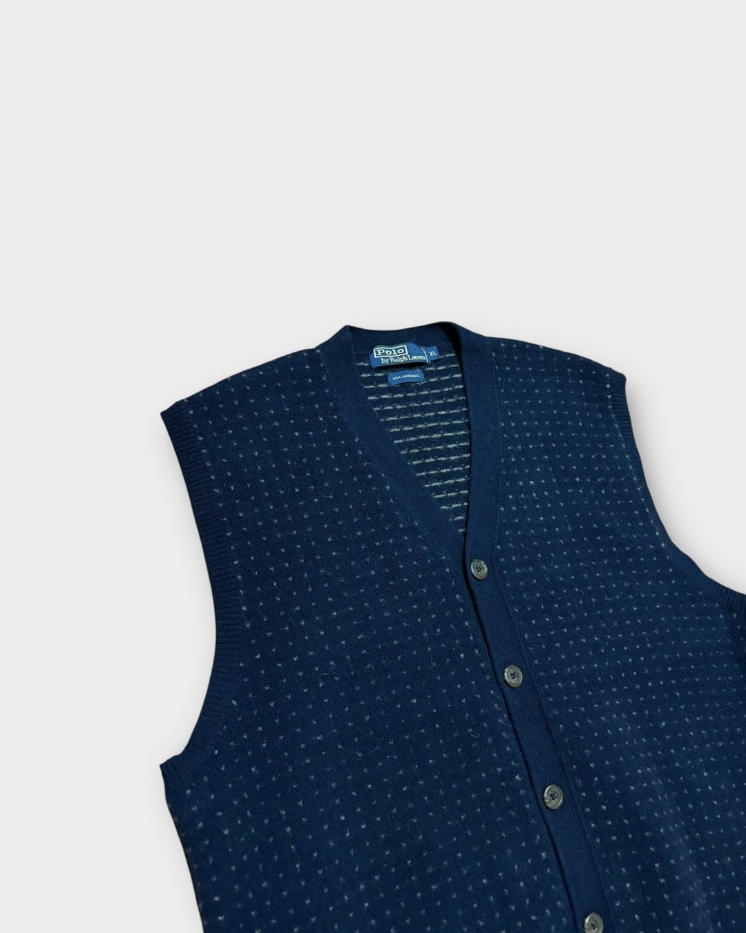 【Used】“Polo by Ralph Lauren” Lambswool Knit Vest Navy Dot Pattern