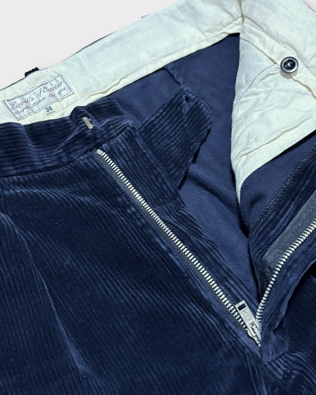 イギリス・エクセターで1800年代から紳士服を仕立ててきた老舗テーラー「Luget’s of Exeter」の1タックコーデュロイトラウザーズ。
