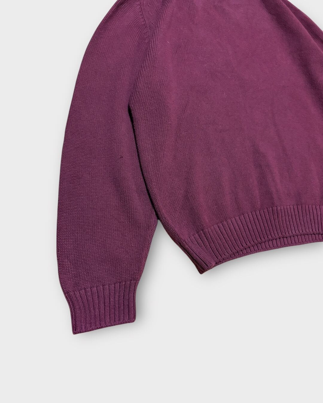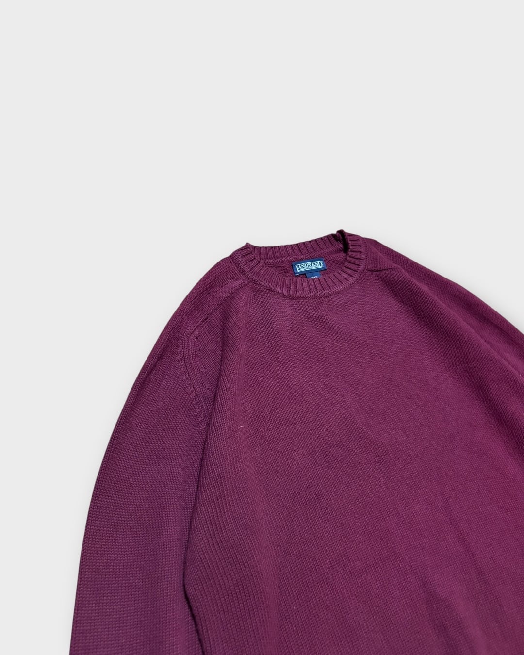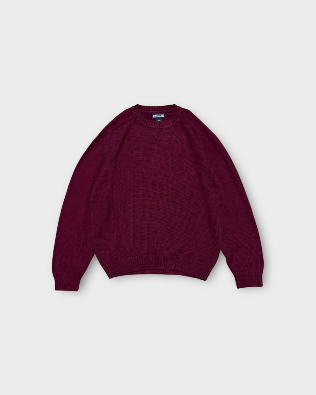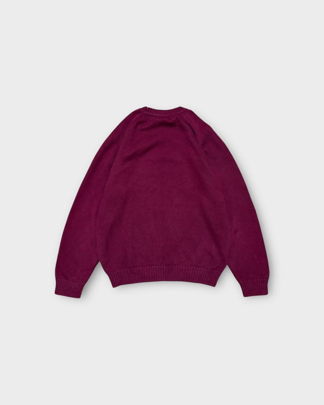 アメリカ製ならではのしっかりとした編み立てに、深みのあるボルドーカラーが映える一枚です。