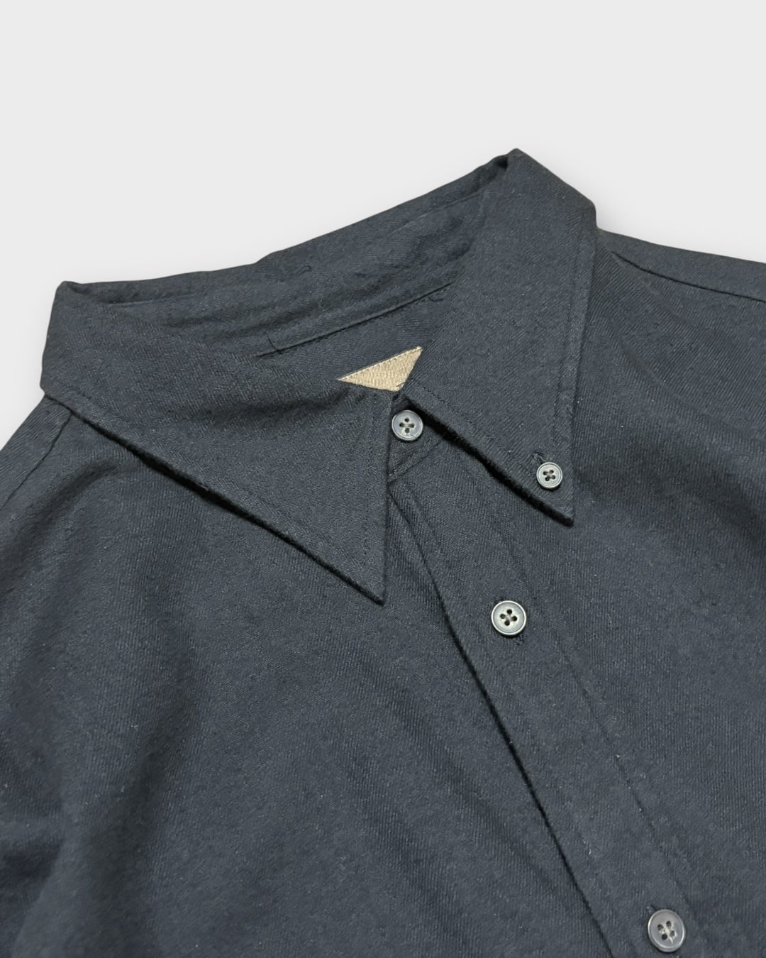 柔らかなコットンフランネル素材で、マットな質感と深みのある黒が特徴の一枚。