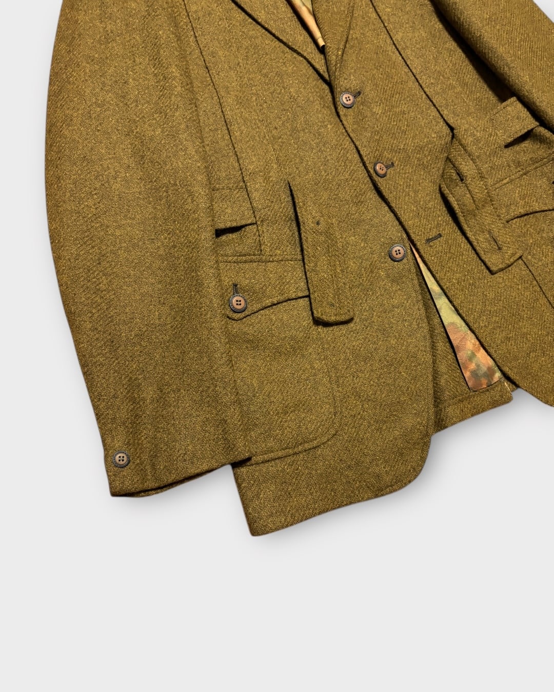 ミドルブラウン〜オリーブの中間のような渋みのあるツイード生地を使用し、