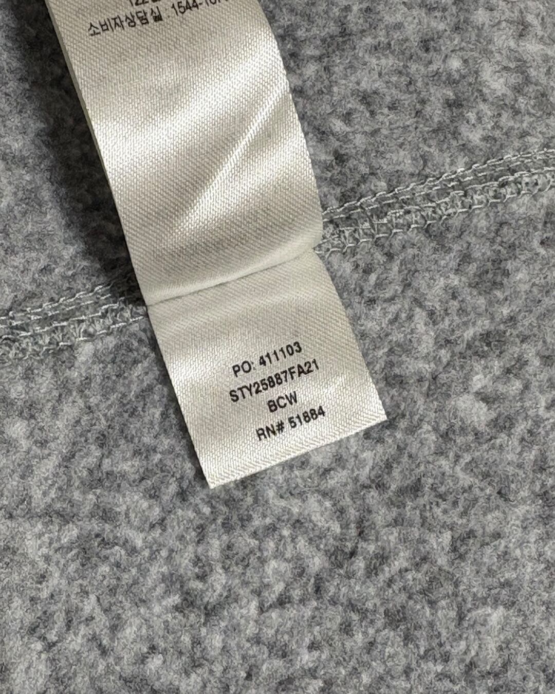 霜降り調のライトグレーが落ち着いた印象で、幅広いスタイリングに馴染む一枚。