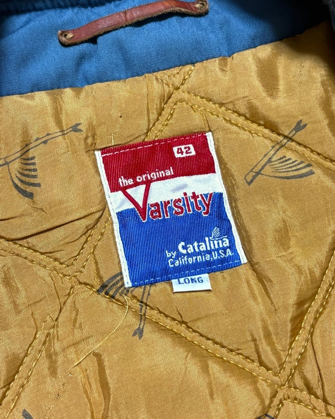 【VINTAGE】1970’s–1980’s “Catalina” Varsity Quilted Bomber Jacket Flying-Fish Liner MADE IN U.S.A.