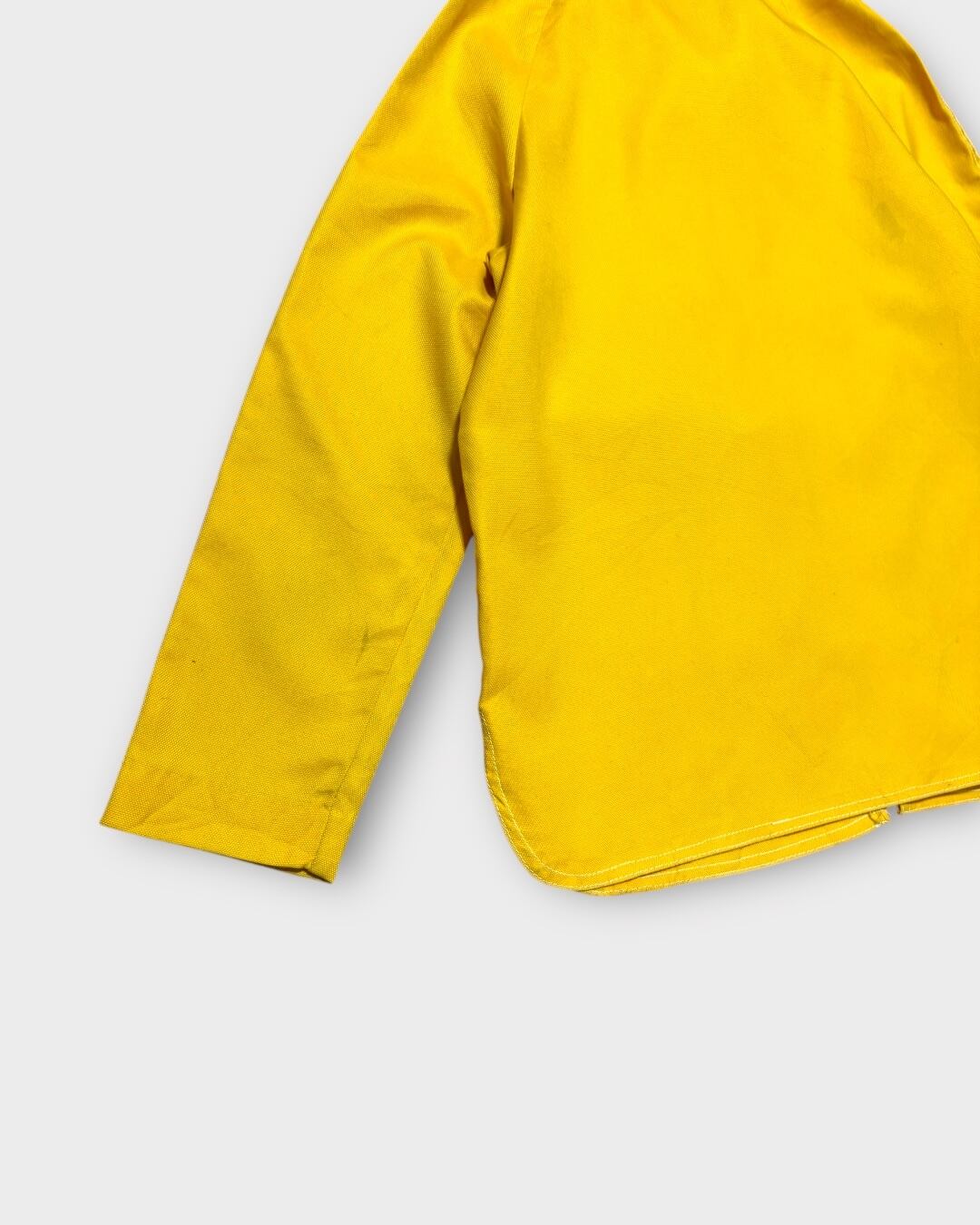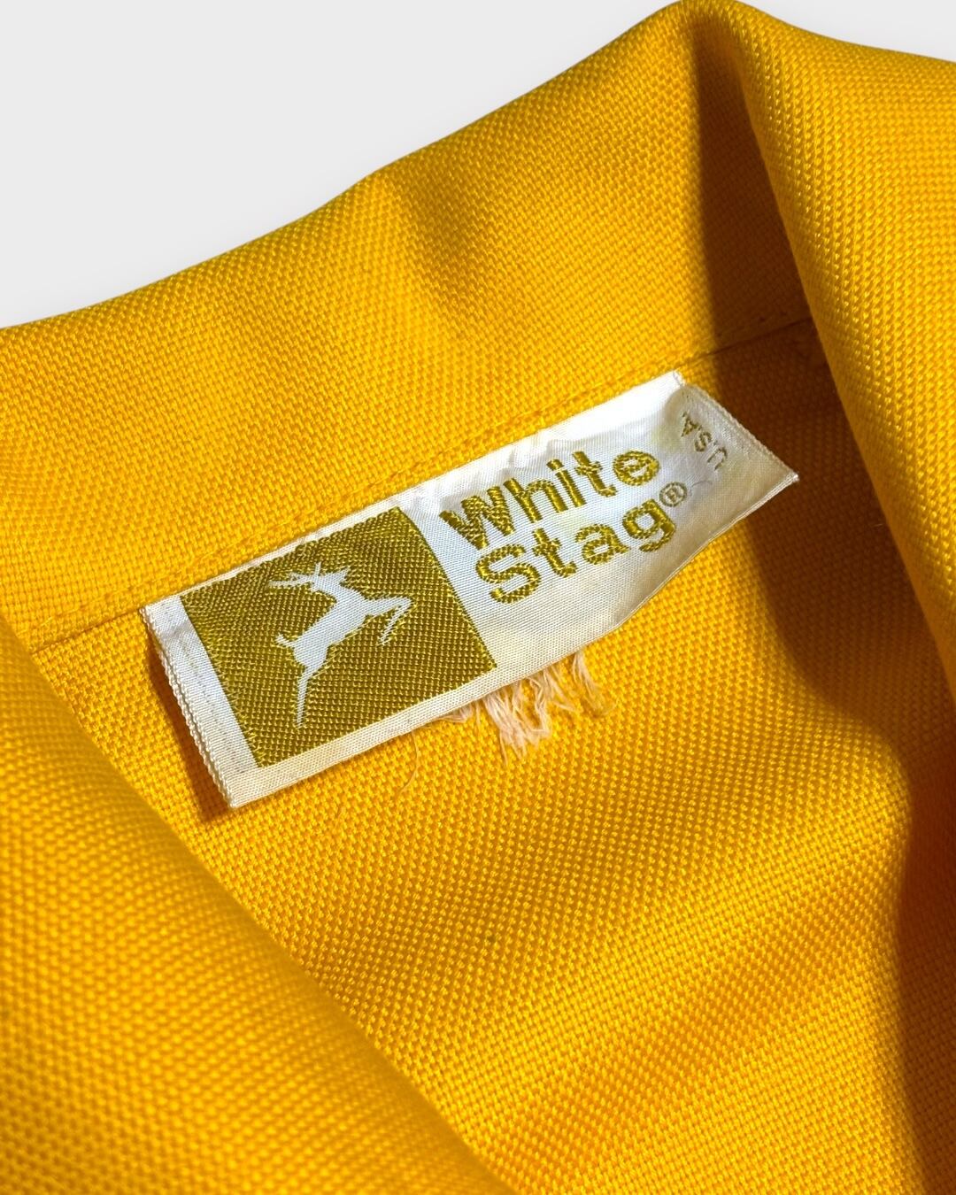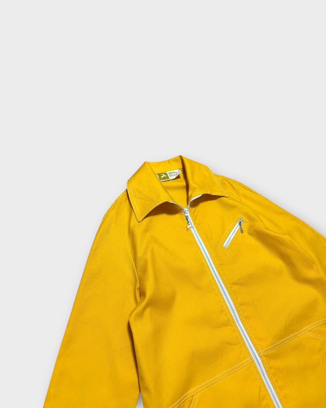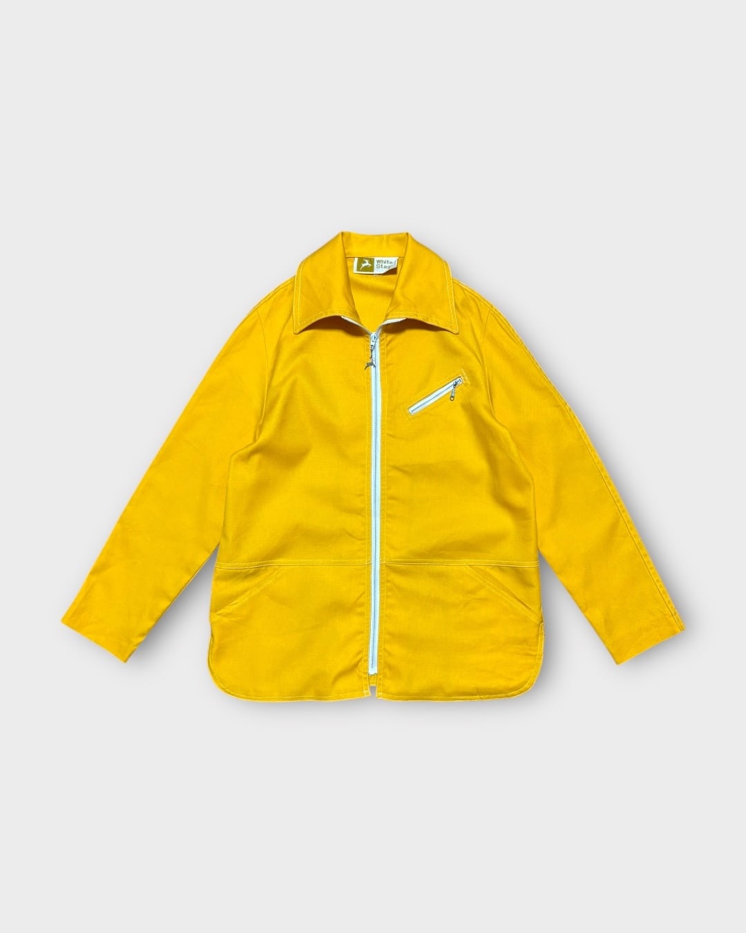 鮮やかなイエローカラーにホワイトのジップとステッチが映える、70’sらしい配色の一枚です。