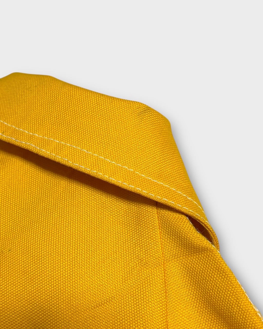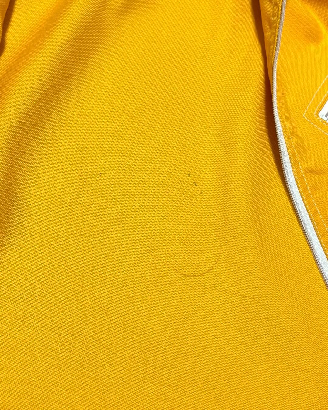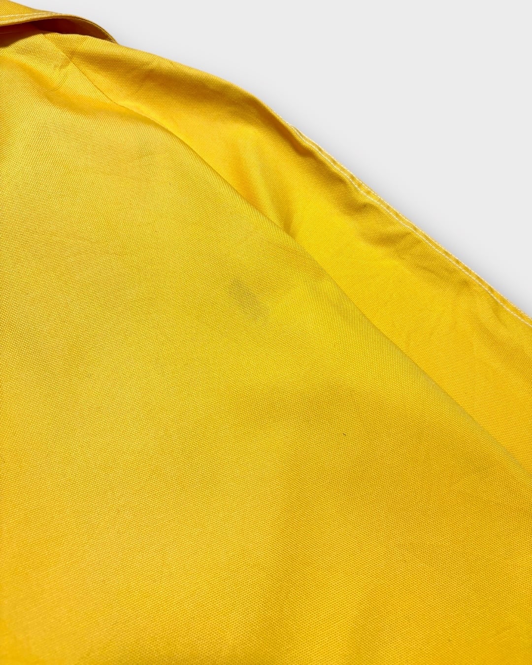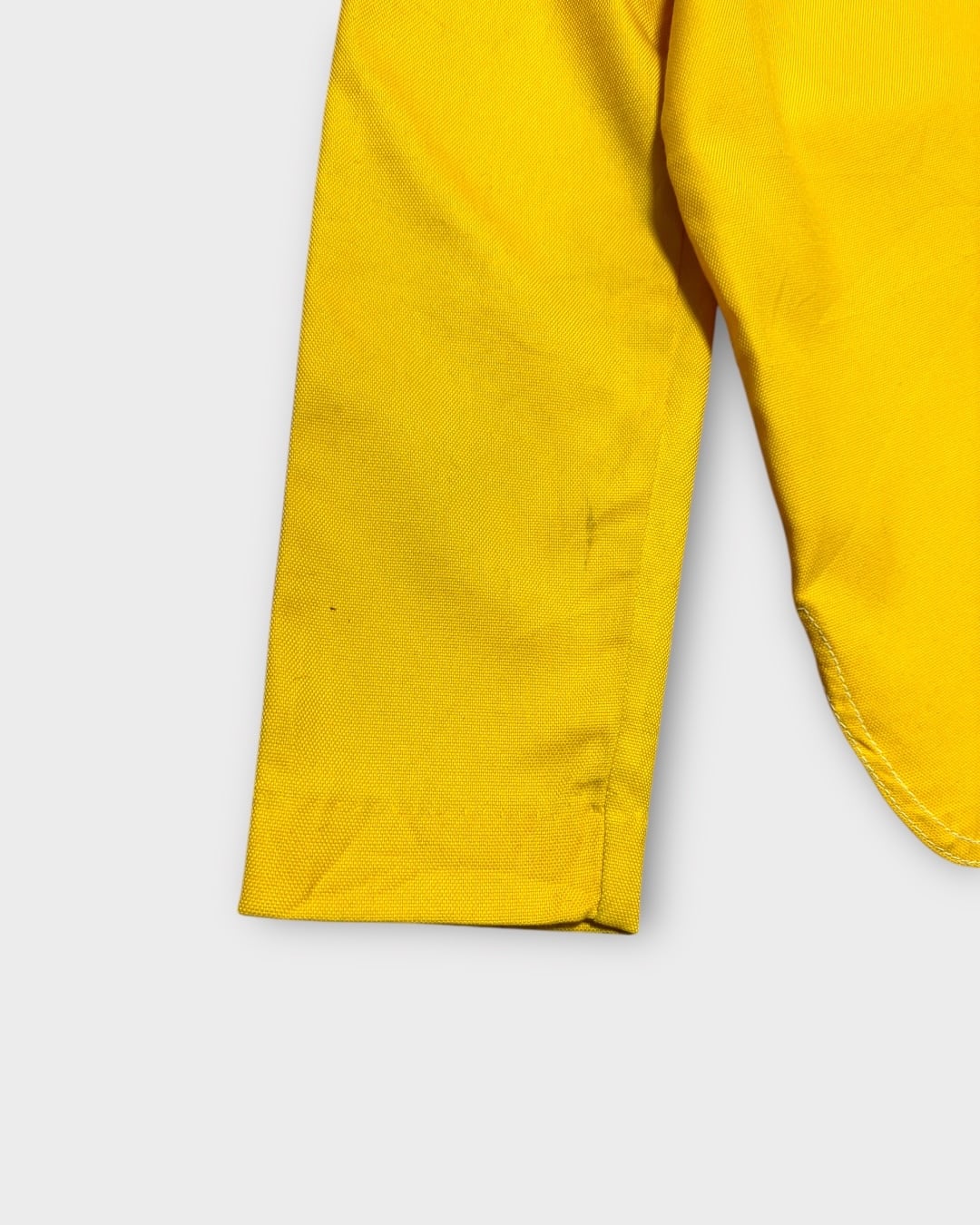 鮮やかなイエローカラーにホワイトのジップとステッチが映える、70’sらしい配色の一枚です。