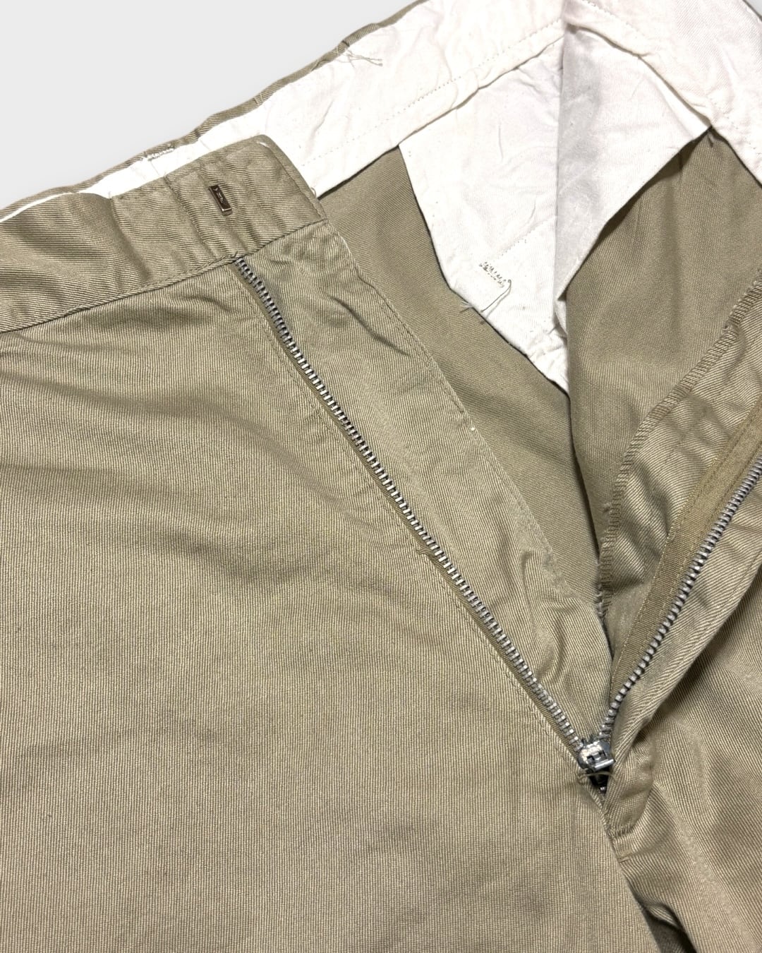 この時代を最後にポリ混へと移行するため、純粋なコットンチノとしては最終期にあたる一着です。