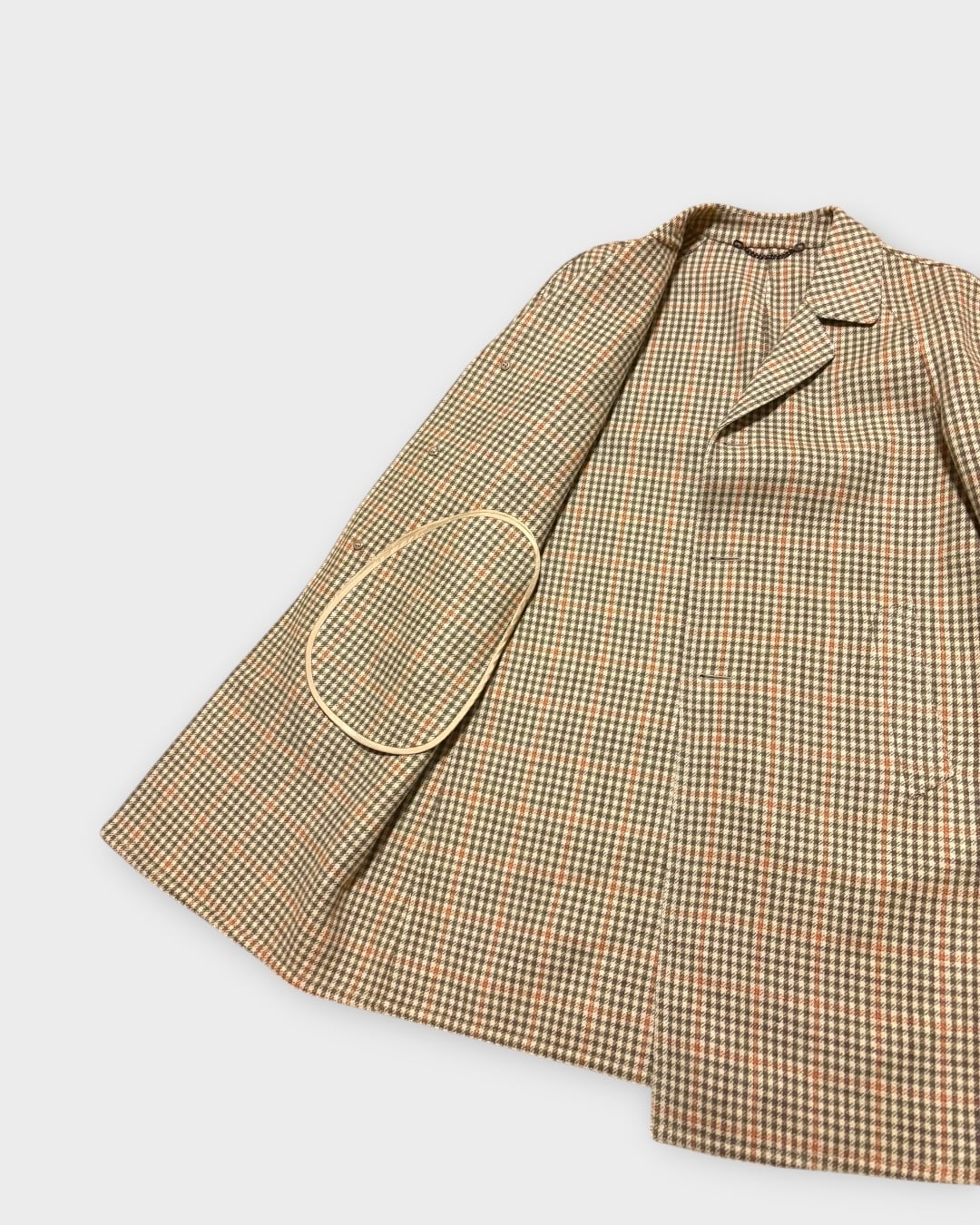 袖口には「LAVORAZIONE A MANO(手縫い仕立て)」タグが付き、丁寧な縫製で仕立てられた一着です。