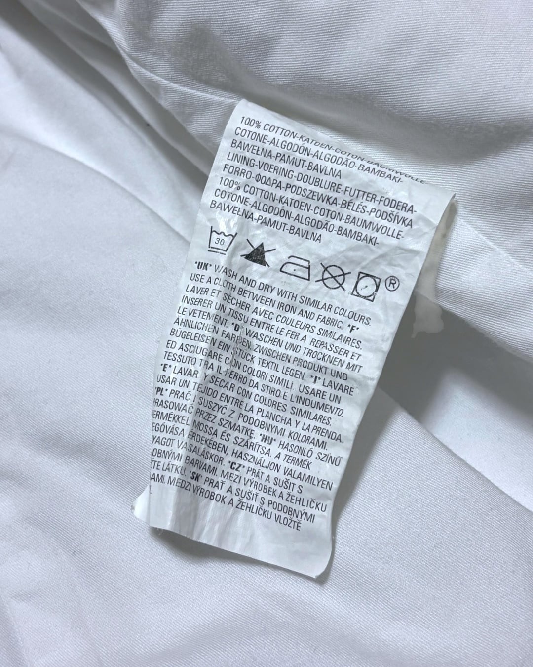 全体的に着用感はありますが、白物としては良好なコンディションで、目立つ汚れやダメージは見られません。