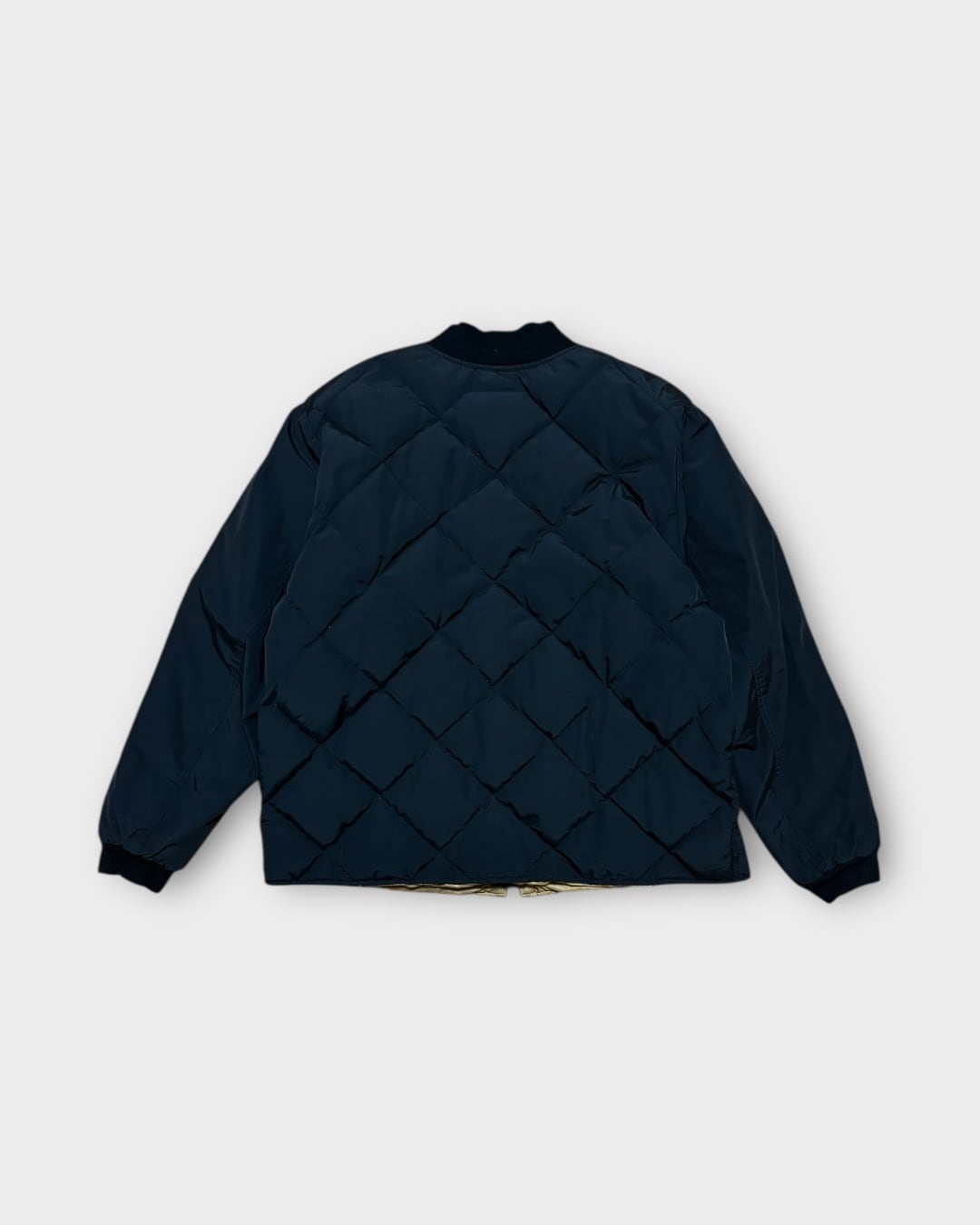 ダイヤ状のクラシックなキルトパターンに、ブラックカラーの落ち着いたルックスが魅力の一枚です。