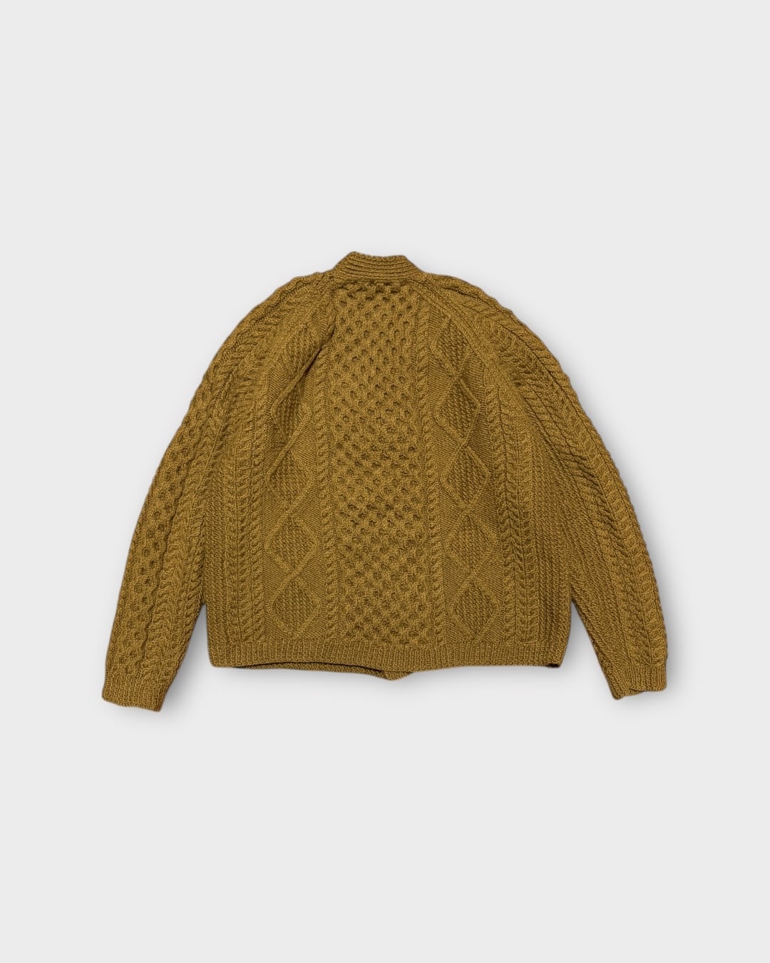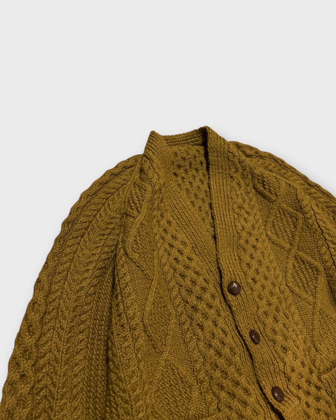 ハンドメイドで丁寧に編み込まれたアランニットカーディガン。
