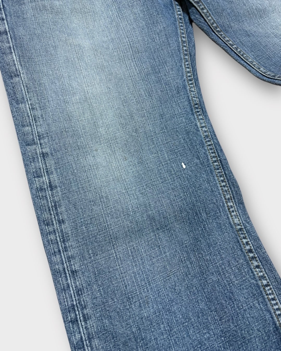 インディゴのフェード感は古着らしい雰囲気がしっかりあり、裾の擦れや小さなペンキ跡もワーク感のある良い味として活きています。