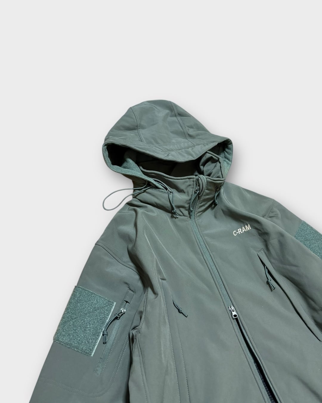 深みのあるオリーブカラーで、街でもアウトドアスタイルでも合わせやすい万能なタクティカルジャケットです。