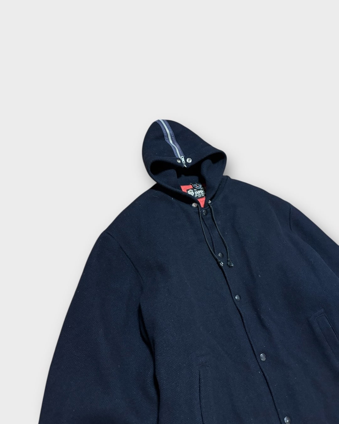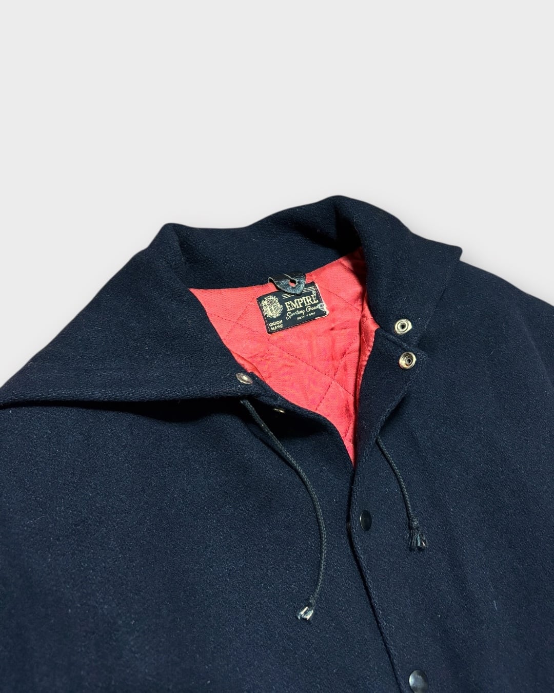 【VINTAGE】1970’s “EMPIRE” Hooded Wool Varsity Jacket — Dark Navy