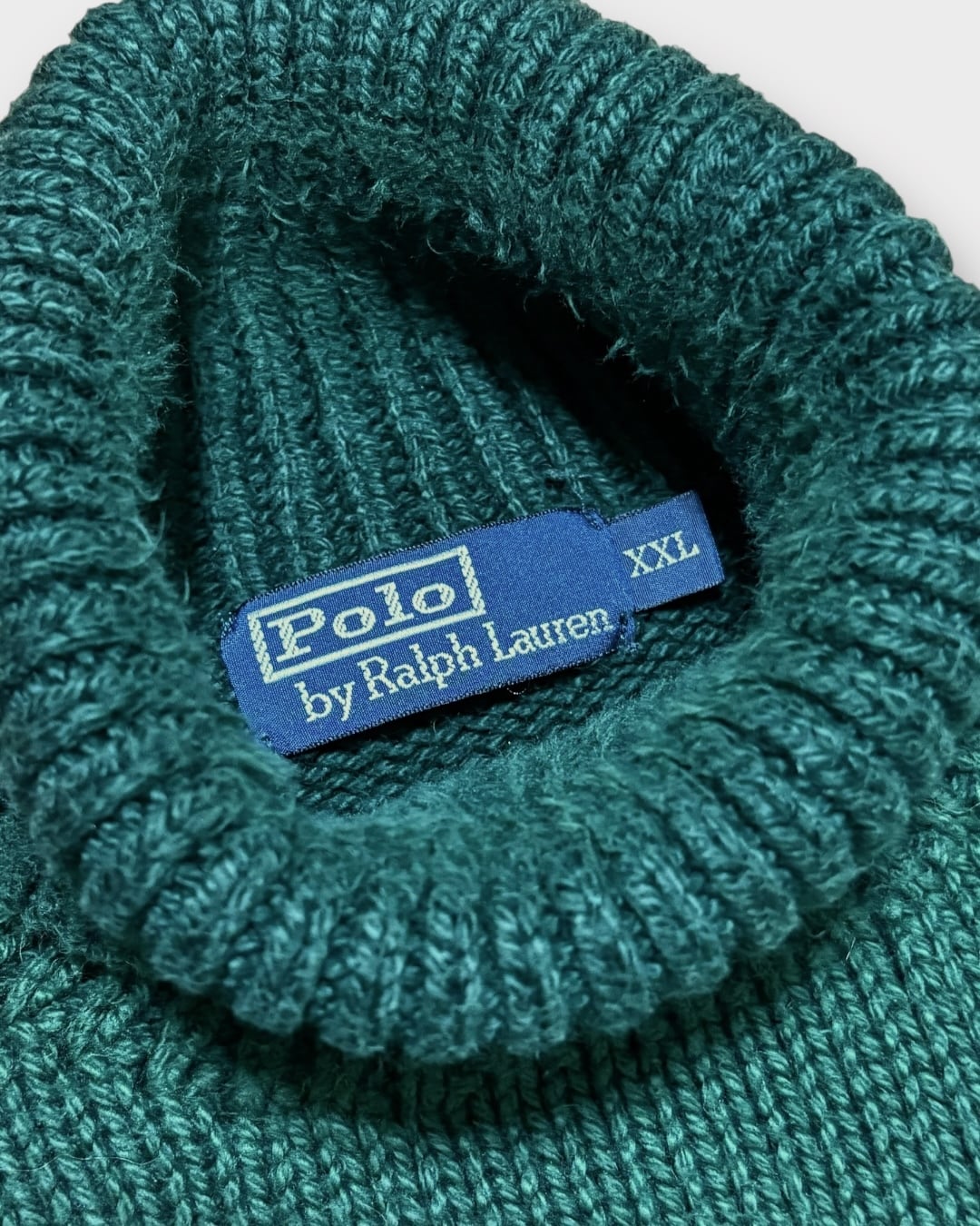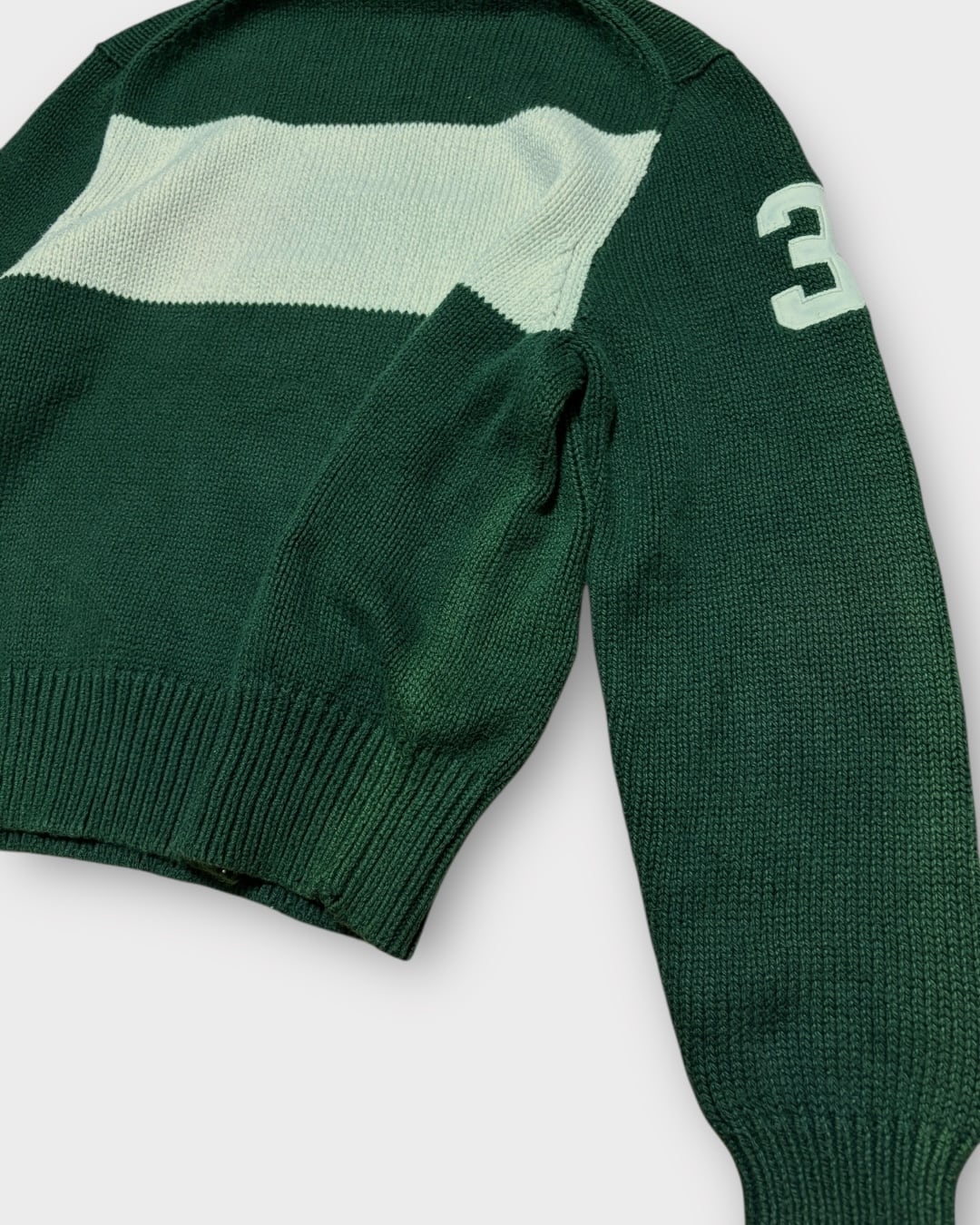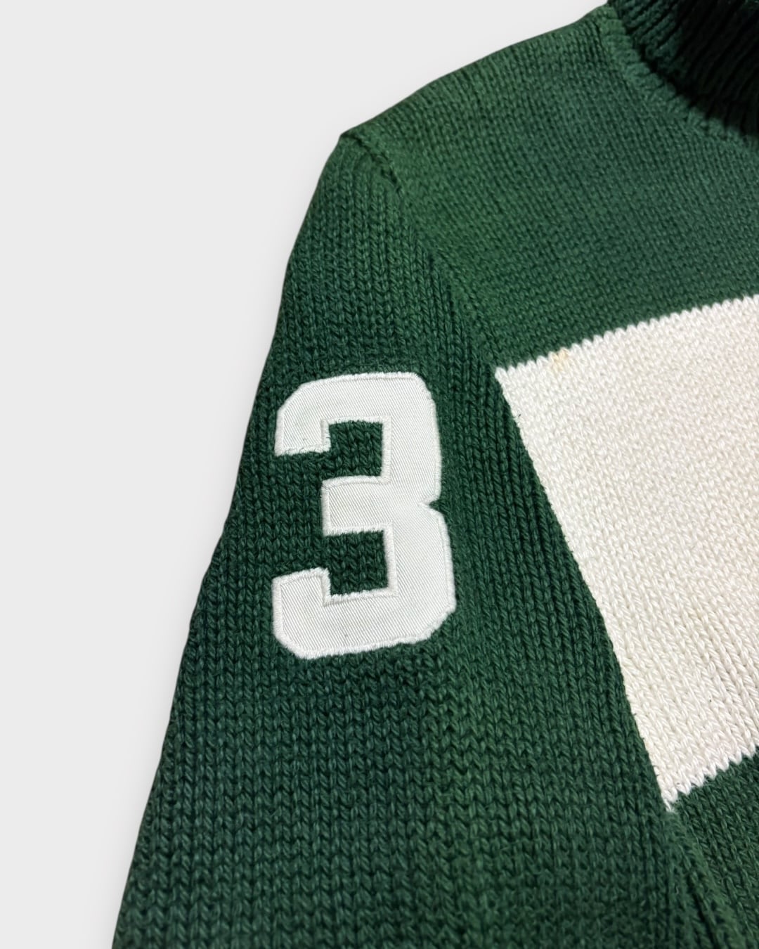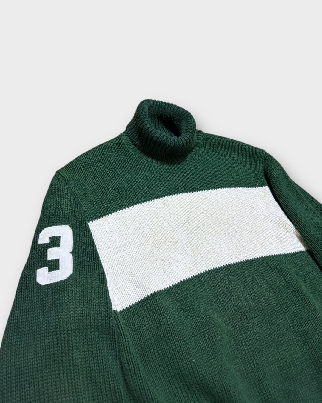 【VINTAGE】1990’s “Polo by Ralph Lauren” Numbering Line Turtle Knit Sweater Green × White