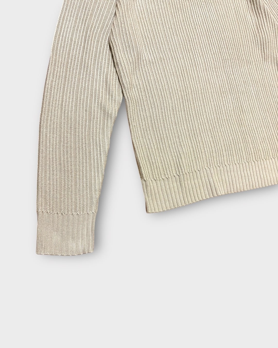 リブ編みの表情がシンプルながら奥行きのある印象。