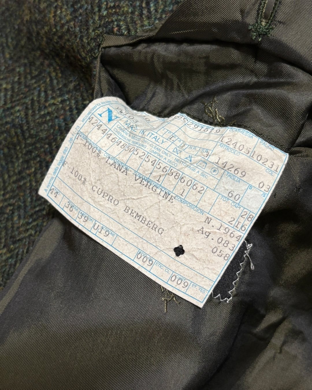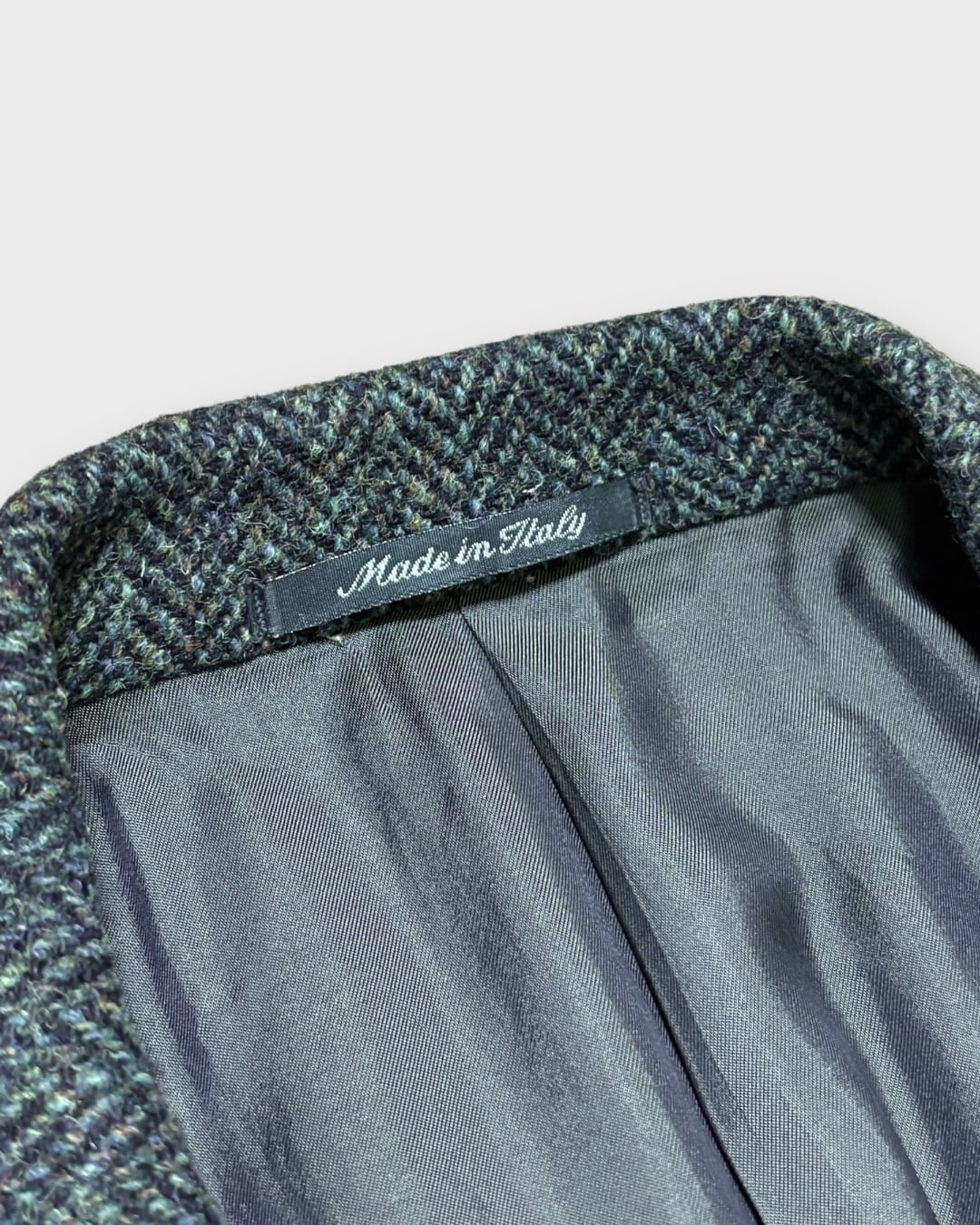 イタリア製らしい端正な仕立てで、ツイード生地ながら重たくなりすぎないバランスです。